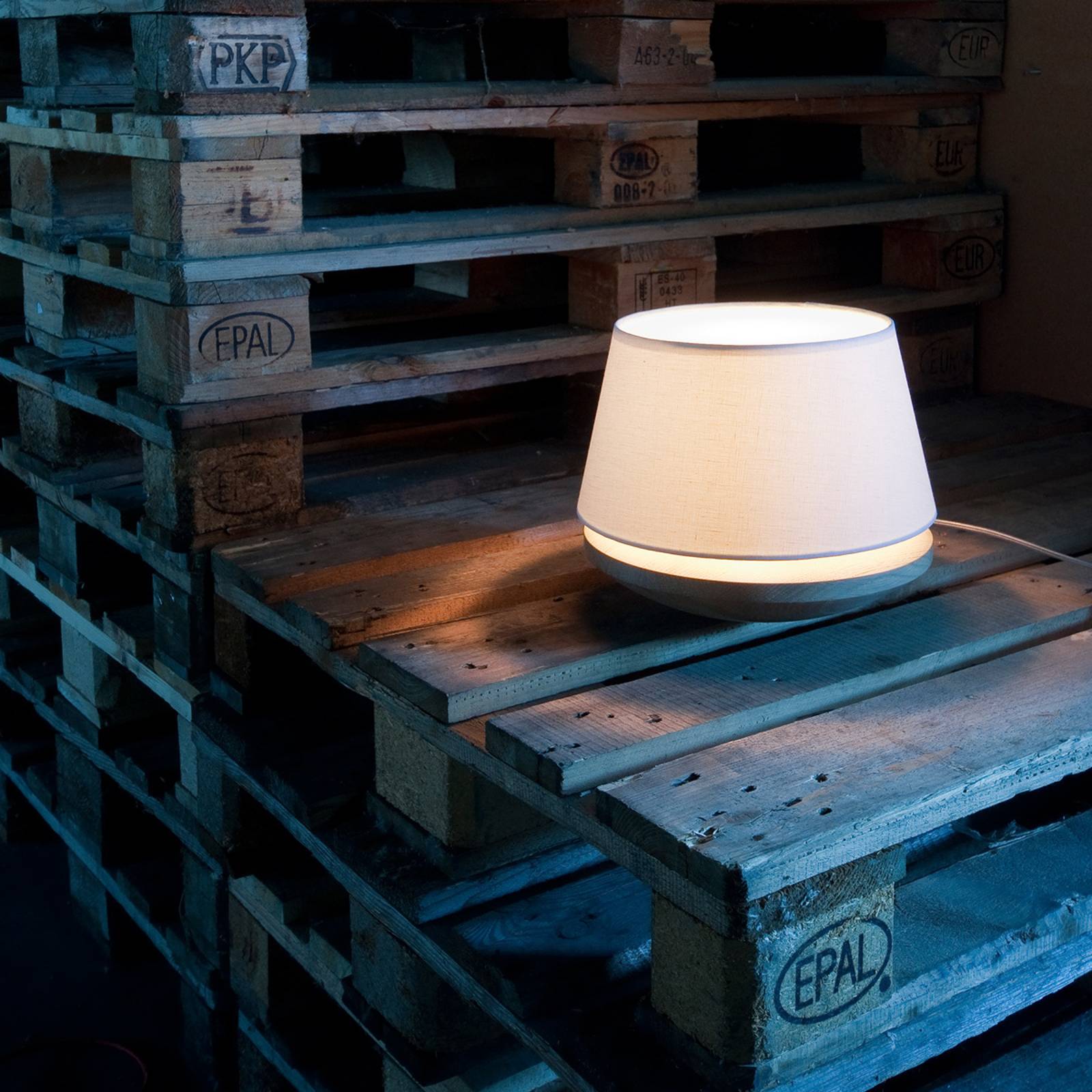 Domus Kjell – stolní lampa se stínidlem z plátna/krémová, Ložnice, dub, plátno, E27, 70W, K: 25.5cm