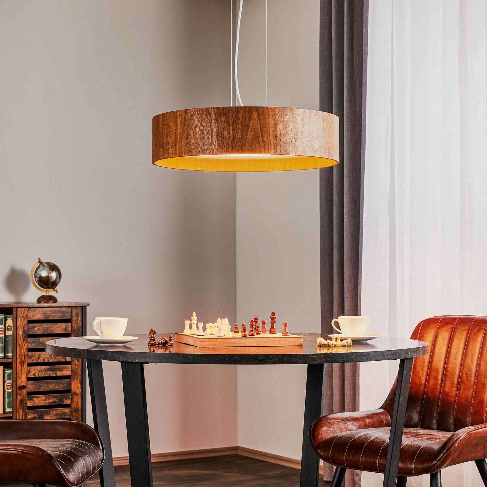 Domus LED závěsné světlo LARAwood L, ořech, Ø 55 cm, Obývací pokoj / jídelna, ořechové dřevo, plast, textil, 25W, K: 14cm
