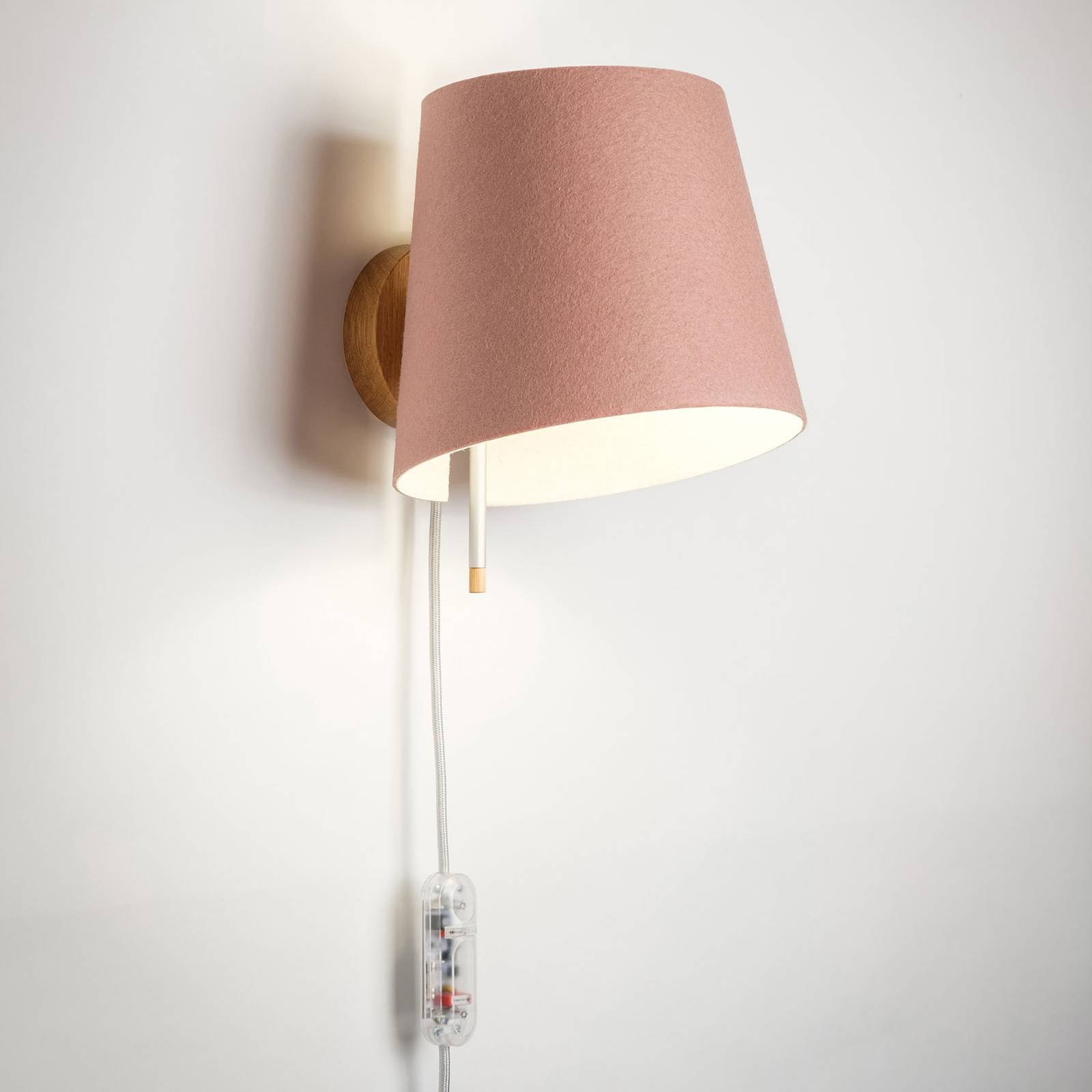 Domus Nástěnné svítidlo MUUN zástrčkový kabel, práškový/vlněný bílý, Ložnice, Vlněná plsť, olejovaný dub, E27, 60W, K: 28cm