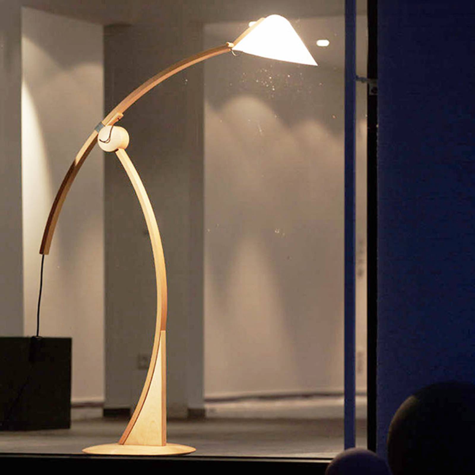 Domus Stojací lampa Pollo E27 v buku, stmívatelná, Obývací pokoj / jídelna, bukové dřevo, lunopal, E27, 45W, K: 172cm