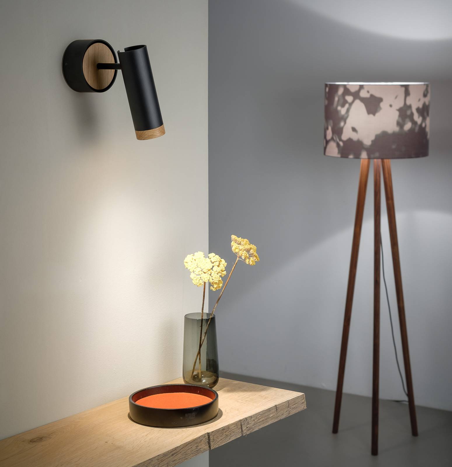 Domus LED nástěnné světlo PHEB 5, otočné, černá/dub, Obývací pokoj / jídelna, kov, dubové dřevo, 11W, L: 10 cm, K: 20cm