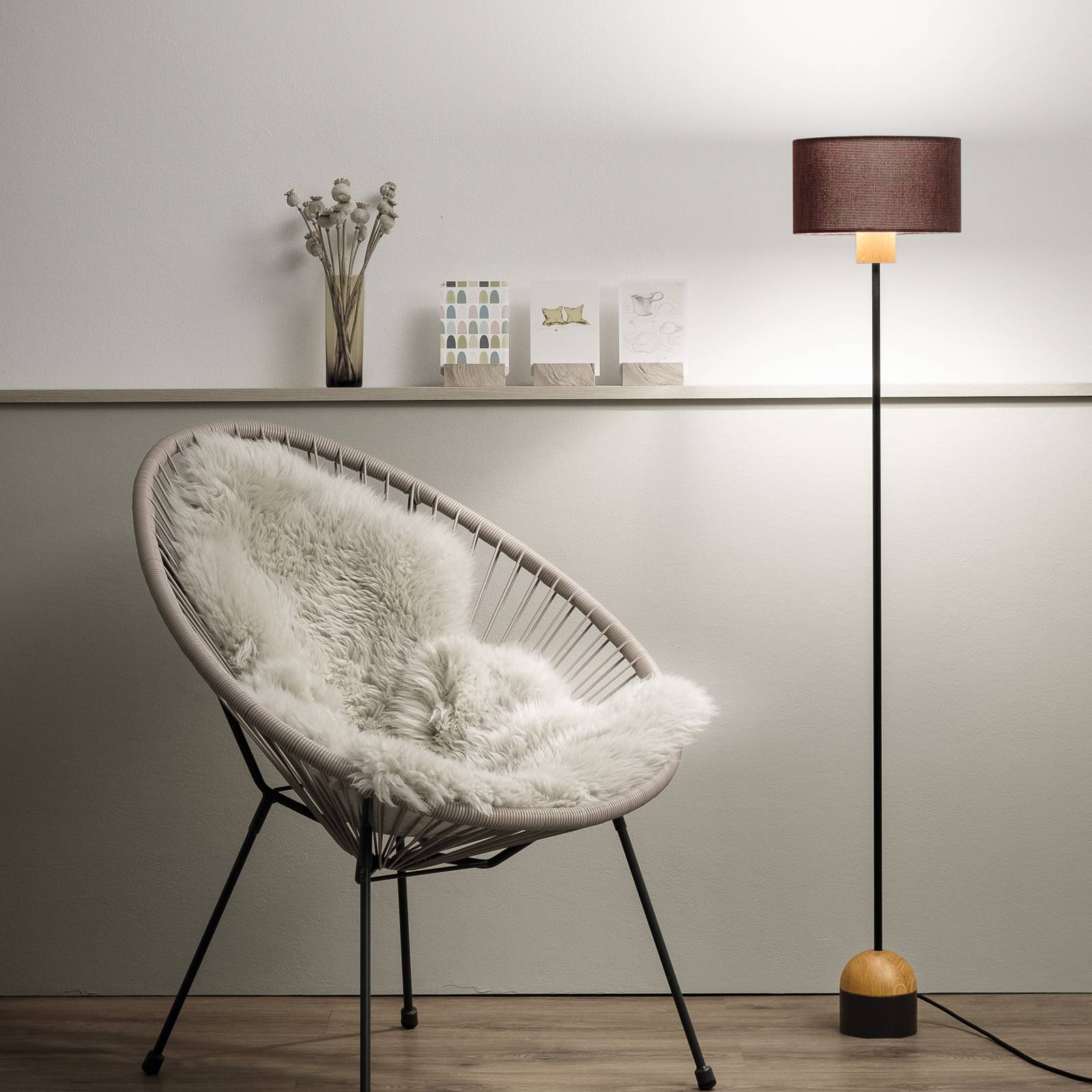 Domus Stojací lampa Smilla, dubové dřevo stínidlo grafit, Obývací pokoj / jídelna, dub, plast (PES), kov, E27, 50W, K: 128cm