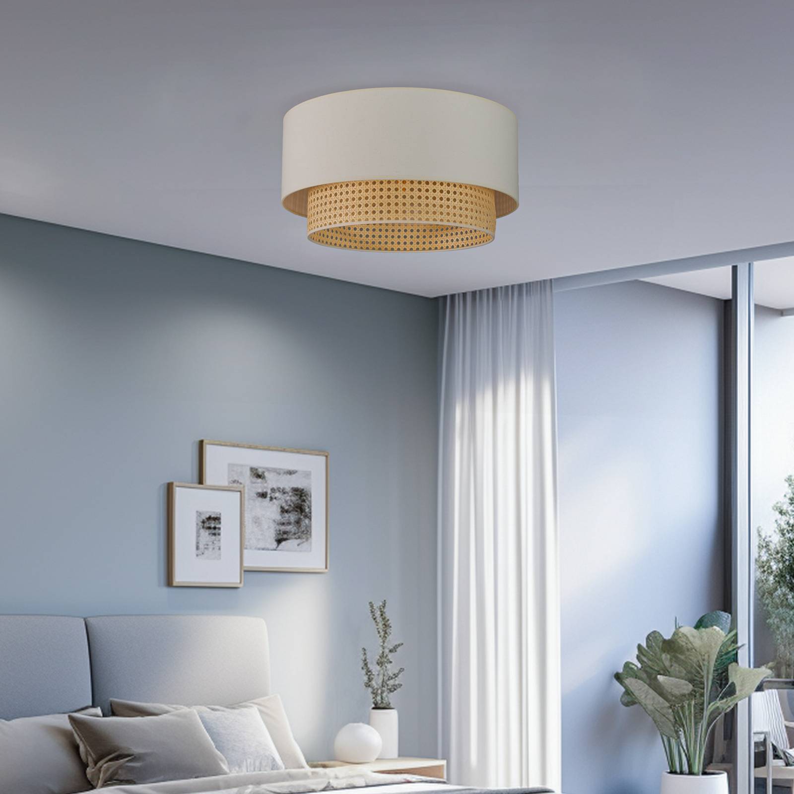 Duolla Stropní světlo Boho, Ø 45 cm, krémová bílá/ratan, Ložnice, bavlna, ratan, E27, 15W, K: 22cm