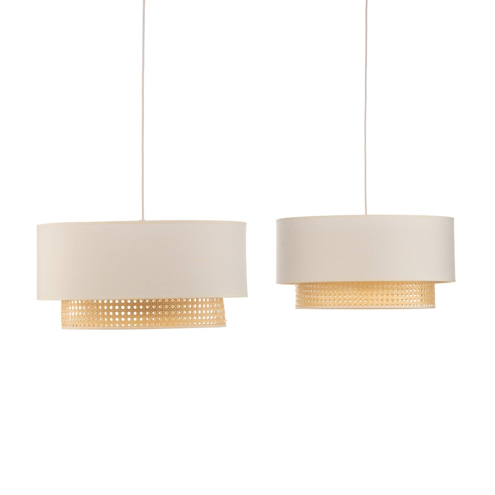Duolla Závěsné světlo Boho, 2 zdroje, textil, bílá/ratan, Obývací pokoj / jídelna, bavlna, kov, ratan, E27, 15W, P: 117 cm, L: 45 cm, K: 22cm