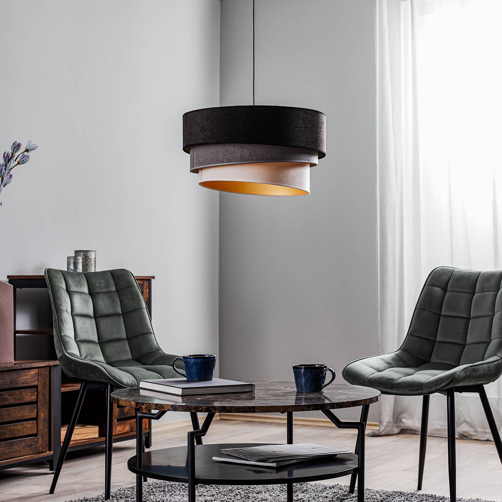 Duolla Závěsné světlo Devon, černá/šedá/ecru/zlatá Ø45cm, Obývací pokoj / jídelna, textilie, PVC, E27, 40W, K: 25cm