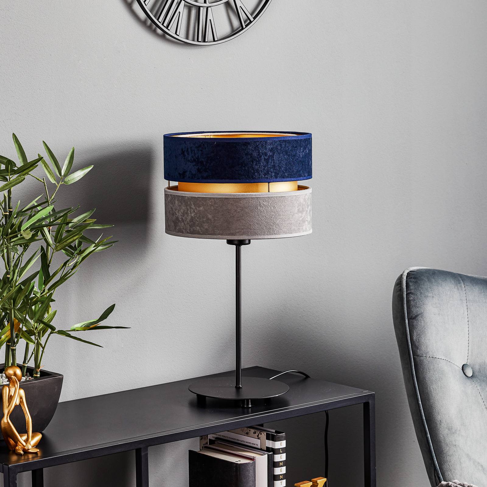 Duolla Stolní lampa Duo, modrá/šedá/zlatá, výška 50cm, Obývací pokoj / jídelna, látka, PVC, kov, E27, 40W, K: 50cm