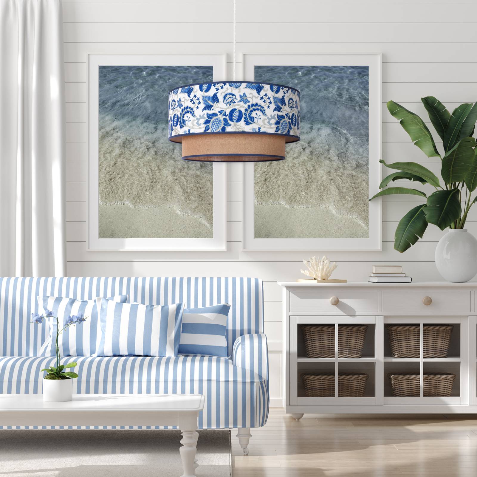 Duolla Závěsné světlo Hampton Boho modrá květiny/juta, Obývací pokoj / jídelna, bavlna, juta, kov, E27, 40W, K: 22cm