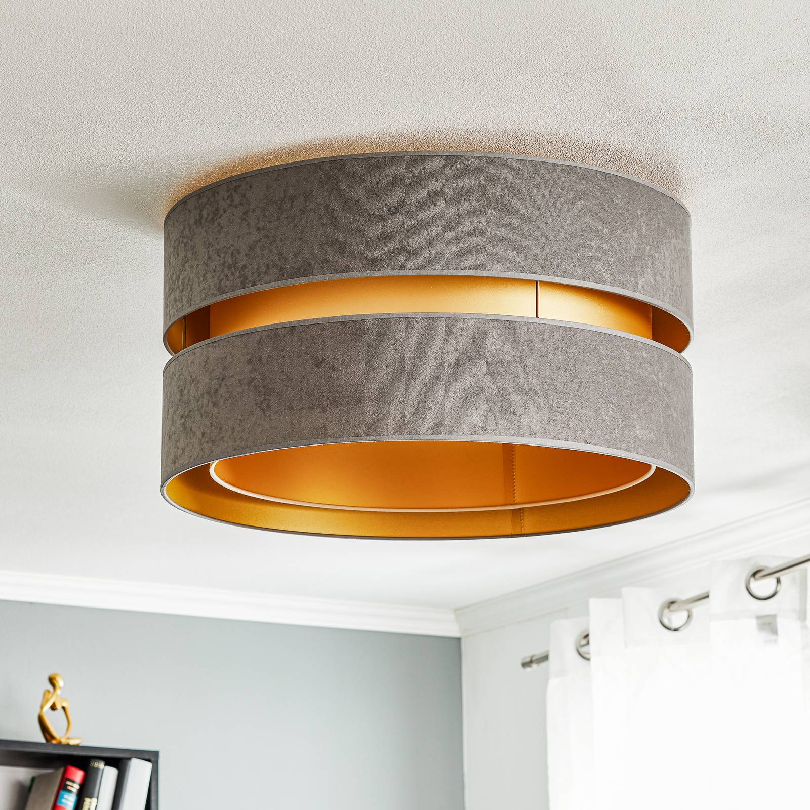 Duolla Stropní světlo Duo z textilu, šedá/zlatá, Ø60cm, Obývací pokoj / jídelna, látka, PVC, kov, E27, 40W, K: 32cm