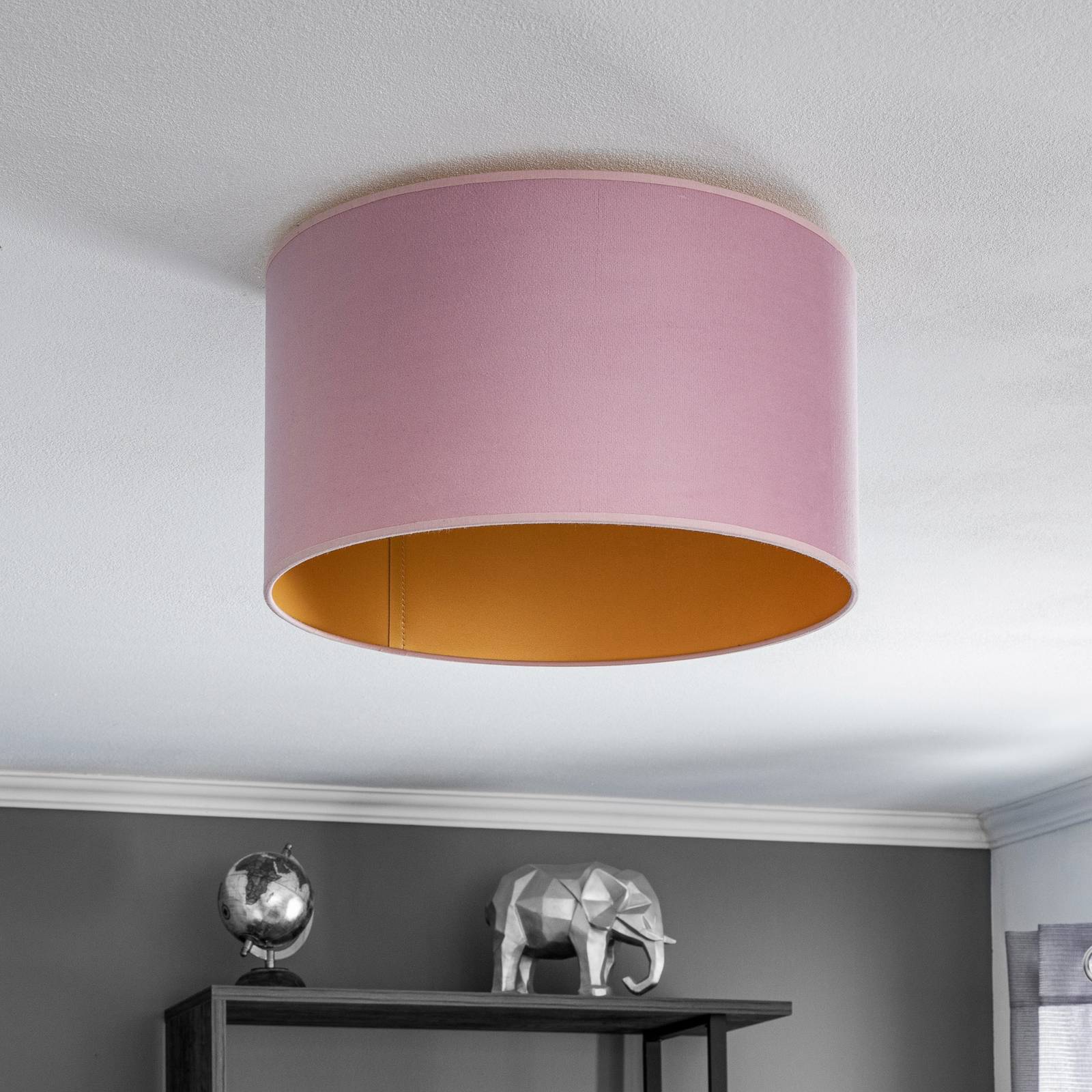 Duolla Stropní světlo Golden Roller Ø 40cm růžová/zlatá, Obývací pokoj / jídelna, samet, E27, 40W, K: 22cm