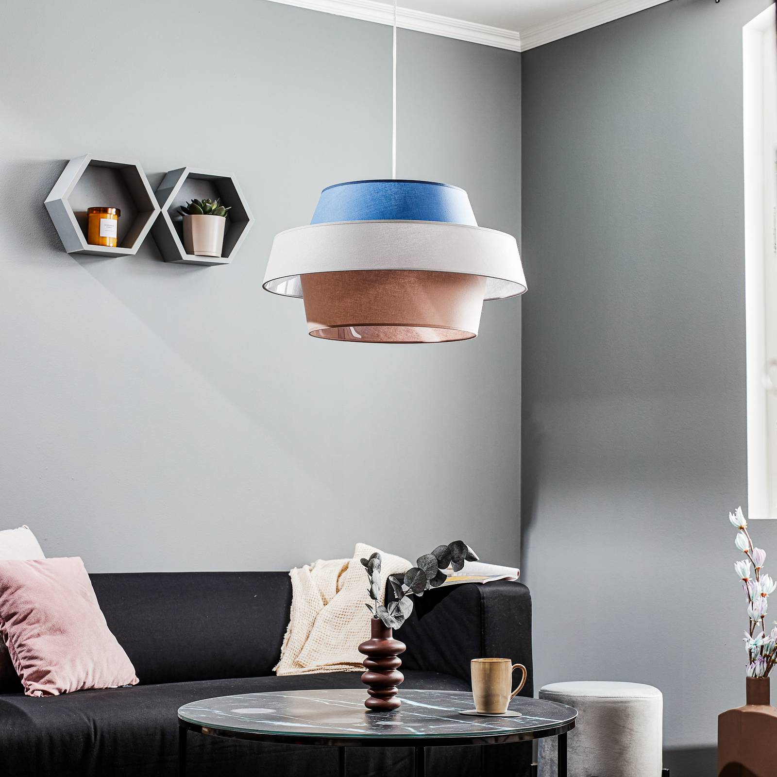 Duolla Závěsné světlo Andromeda, růžová/šedá/námořnická, Obývací pokoj / jídelna, bavlna, E27, 40W, K: 35cm
