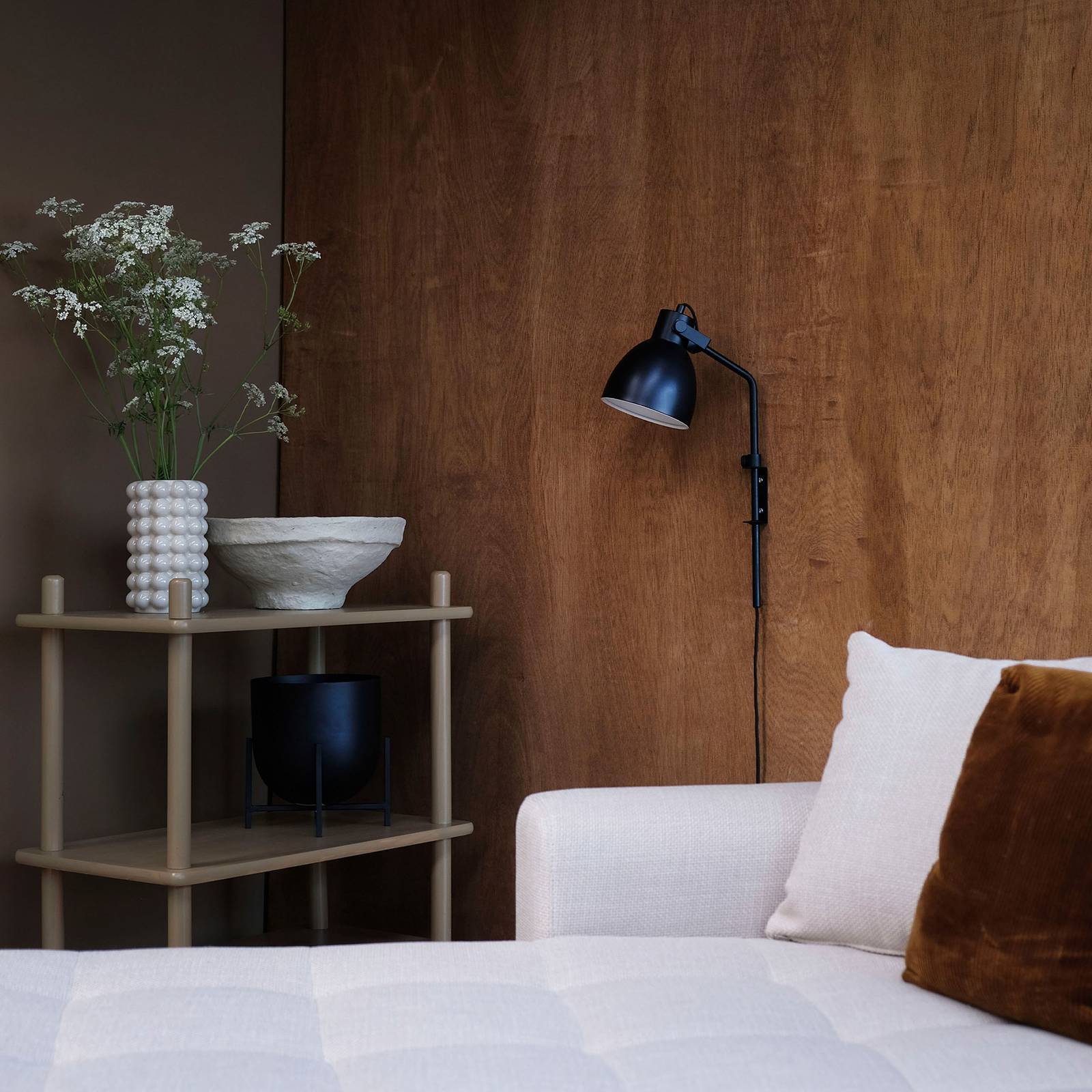 Dyberg Larsen Pobřežní nástěnné svítidlo se zástrčkou černá, Obývací pokoj / jídelna, kov, E27, 20W, L: 15 cm, K: 48.5cm