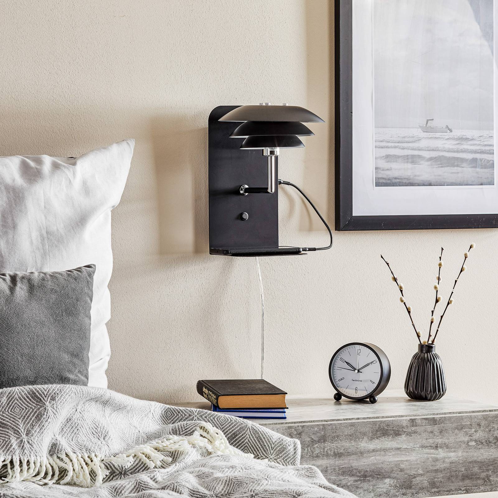 Dyberg Larsen DL20 USB Shelf nástěnné světlo černá, Ložnice, kov, G9, 33W, L: 15 cm, K: 28cm