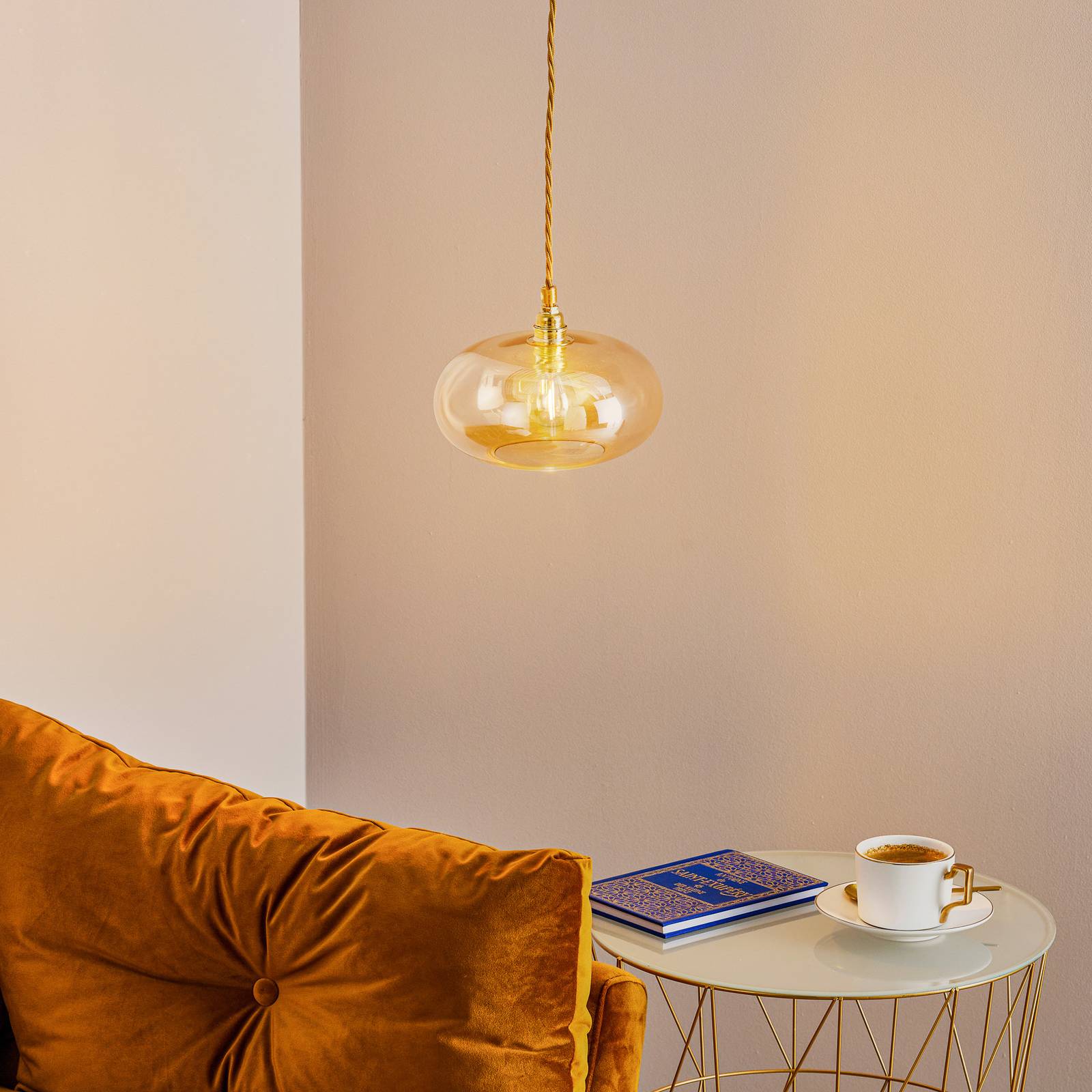 EBB & FLOW Horizon závěsné světlo zlato Ø 21cm, Obývací pokoj / jídelna, sklo, kov, textilie, E14, 25W, K: 14cm