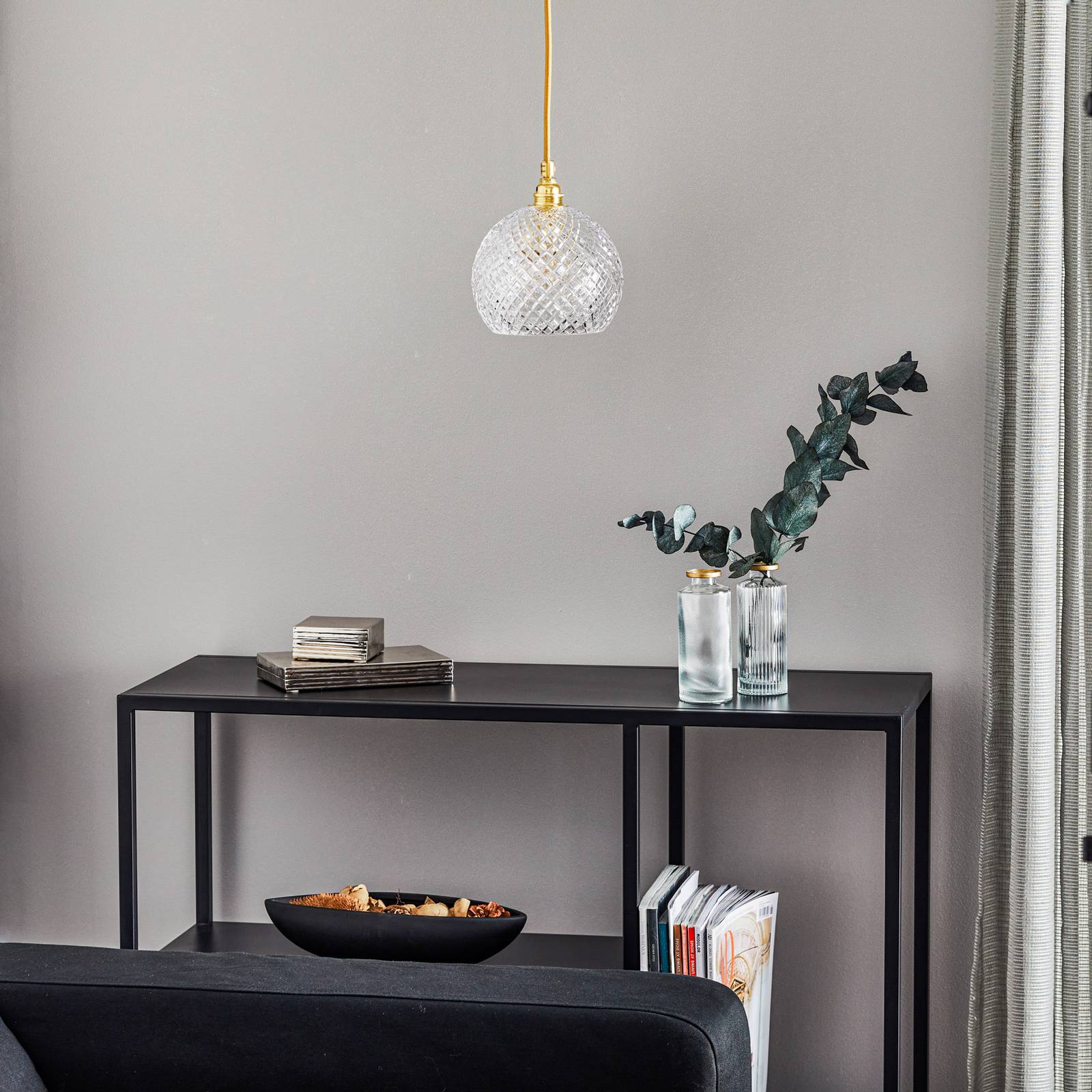 EBB & FLOW Rowan závěsné světlo, zlato Ø 15, 5cm, Obývací pokoj / jídelna, sklo, kov, textilie, E14, 25W, K: 15cm
