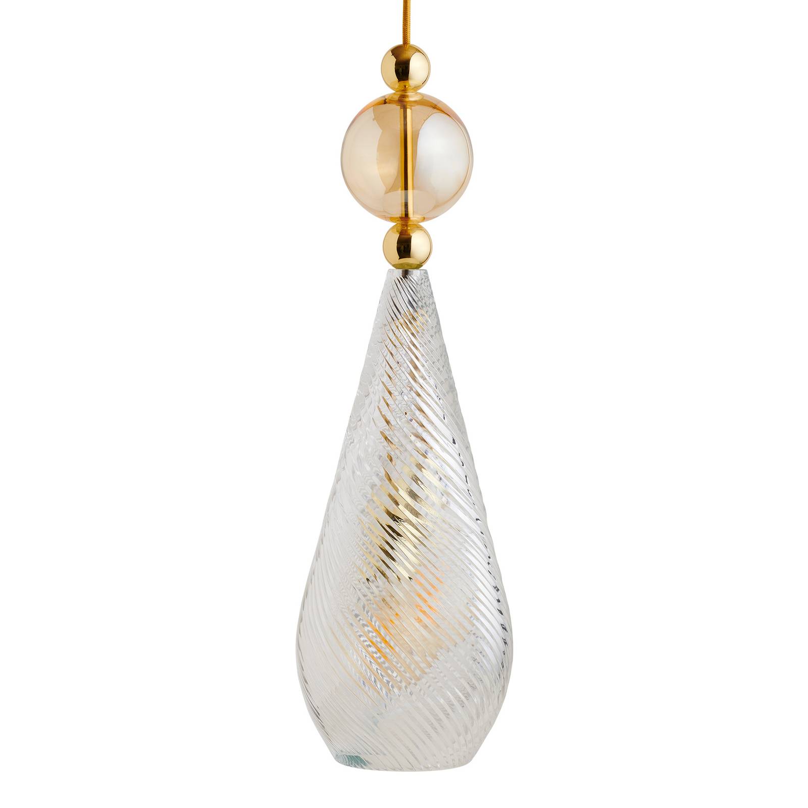EBB & FLOW Uva M závěsná koule zlatá čirá vířivá, Obývací pokoj / jídelna, Křišťálové sklo, kov, plast, G4, 1.5W, K: 10cm
