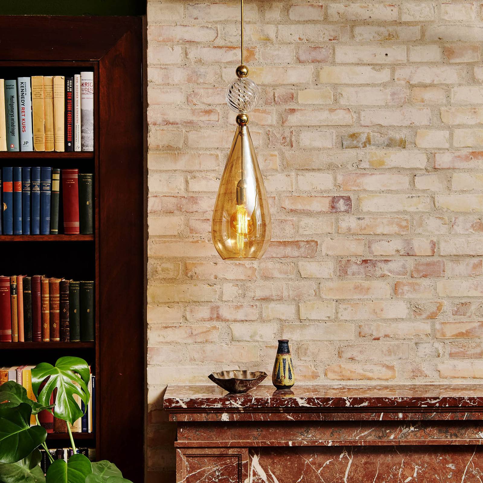 EBB & FLOW Uva L závěsné světlo, koule zlatá, čirá, Obývací pokoj / jídelna, sklo, kov, plast, G4, 1.5W, K: 13cm
