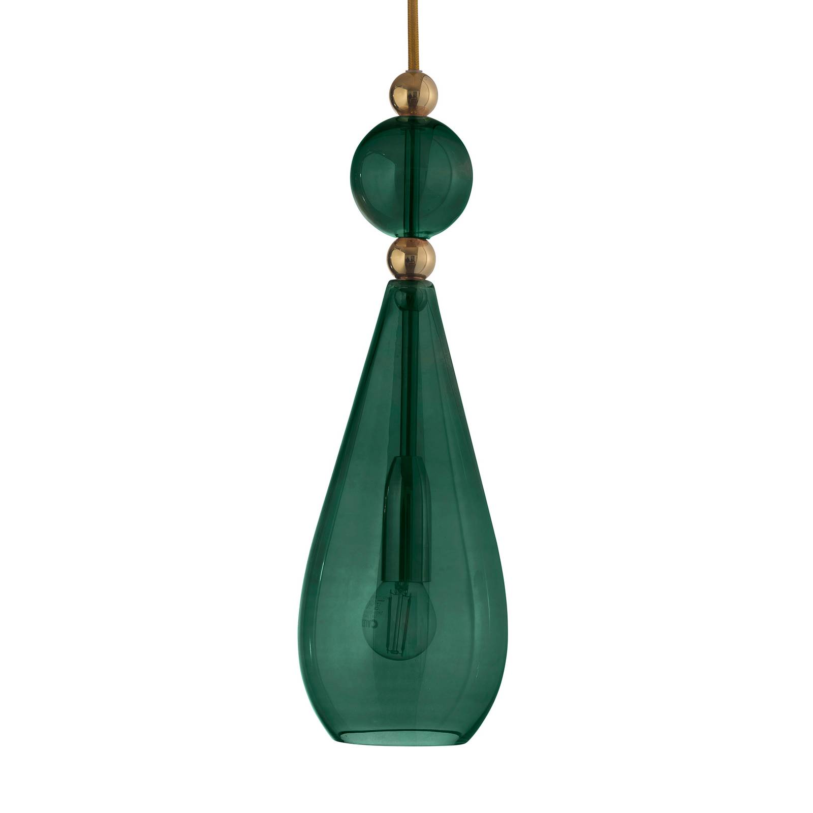 EBB & FLOW Smykke M Závěsné světlo zlaté břečťanově zelené, Obývací pokoj / jídelna, Sklo, kov, textil, E14, 25W, K: 40cm