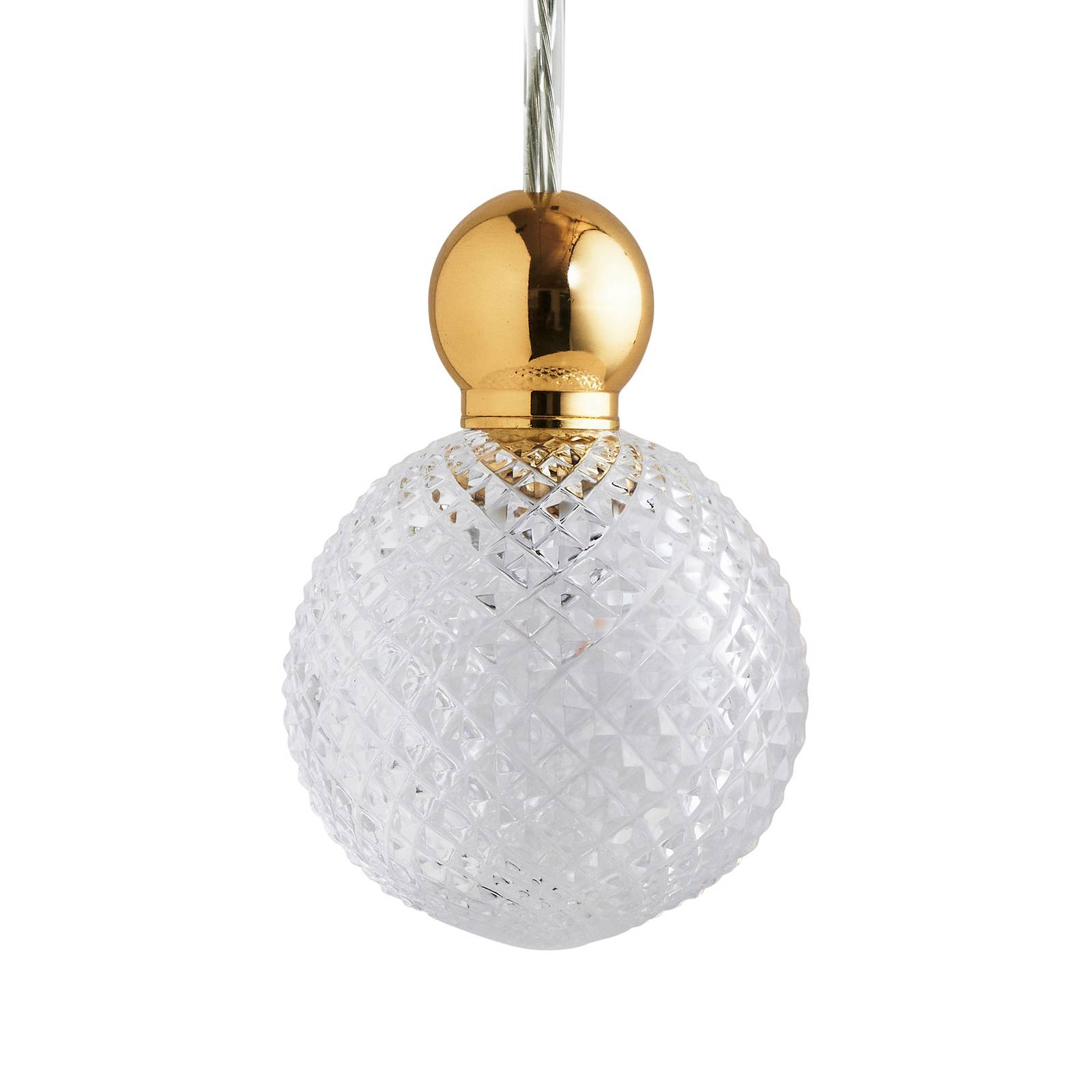 EBB & FLOW Uva L závěsná koule zlatá čirá vířivá, Obývací pokoj / jídelna, Křišťálové sklo, kov, plast, G4, 1.5W, K: 13cm