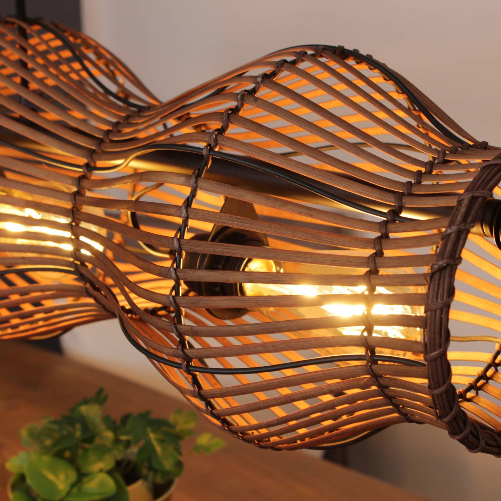 Eco-Light Bambusové závěsné svítidlo, hnědé, 4 světla, Obývací pokoj / jídelna, Bambus, hliník, E27, 40W, P: 109 cm