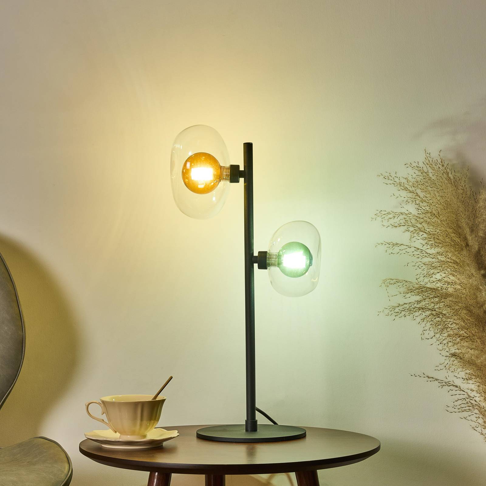 Eco-Light Stolní lampa Uranus jantarová/zelená, výška 45 cm, 2 světla, sklo, Obývací pokoj / jídelna, Sklo, hliník, G9, 10W, K: 48cm