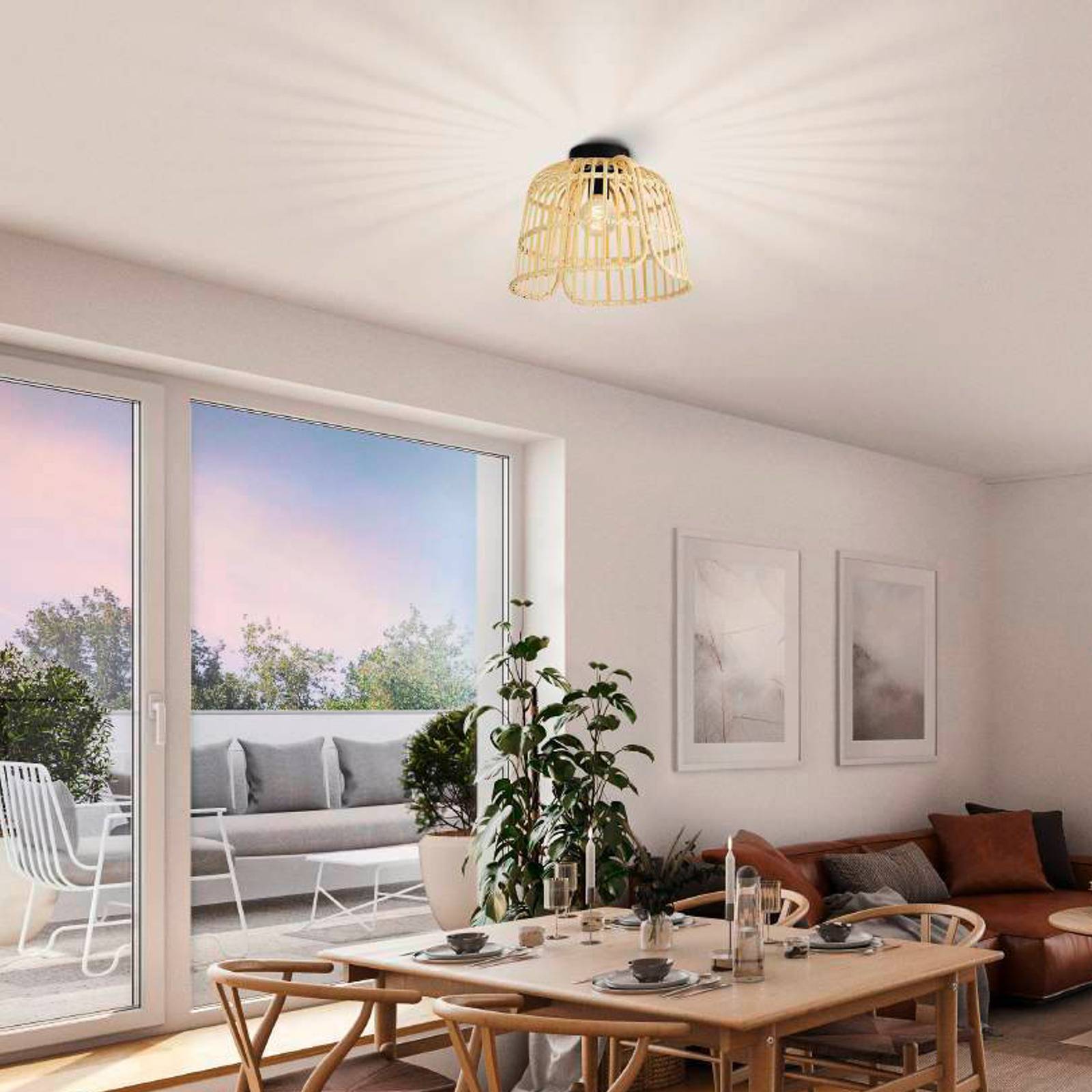 EGLO Glyneath stropní světlo z ratanu, Obývací pokoj / jídelna, ocel, dřevo, E27, 40W, K: 20.5cm