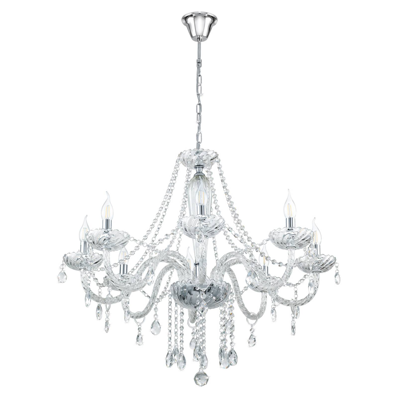 EGLO Skleněný lustr Basilano transparentní, 8 žárovek, Obývací pokoj / jídelna, ocel, sklo, E14, 40W, K: 68cm