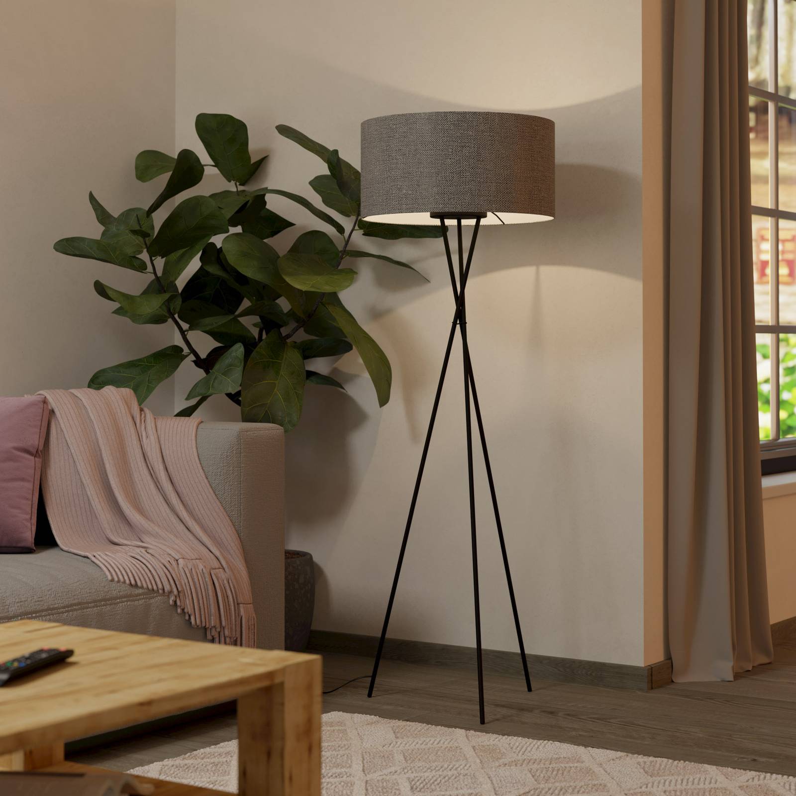 EGLO Stojací lampa Fondachelli s šedým lněným stínidlem, Obývací pokoj / jídelna, Len-textil, ocel, E27, 60W, K: 151cm