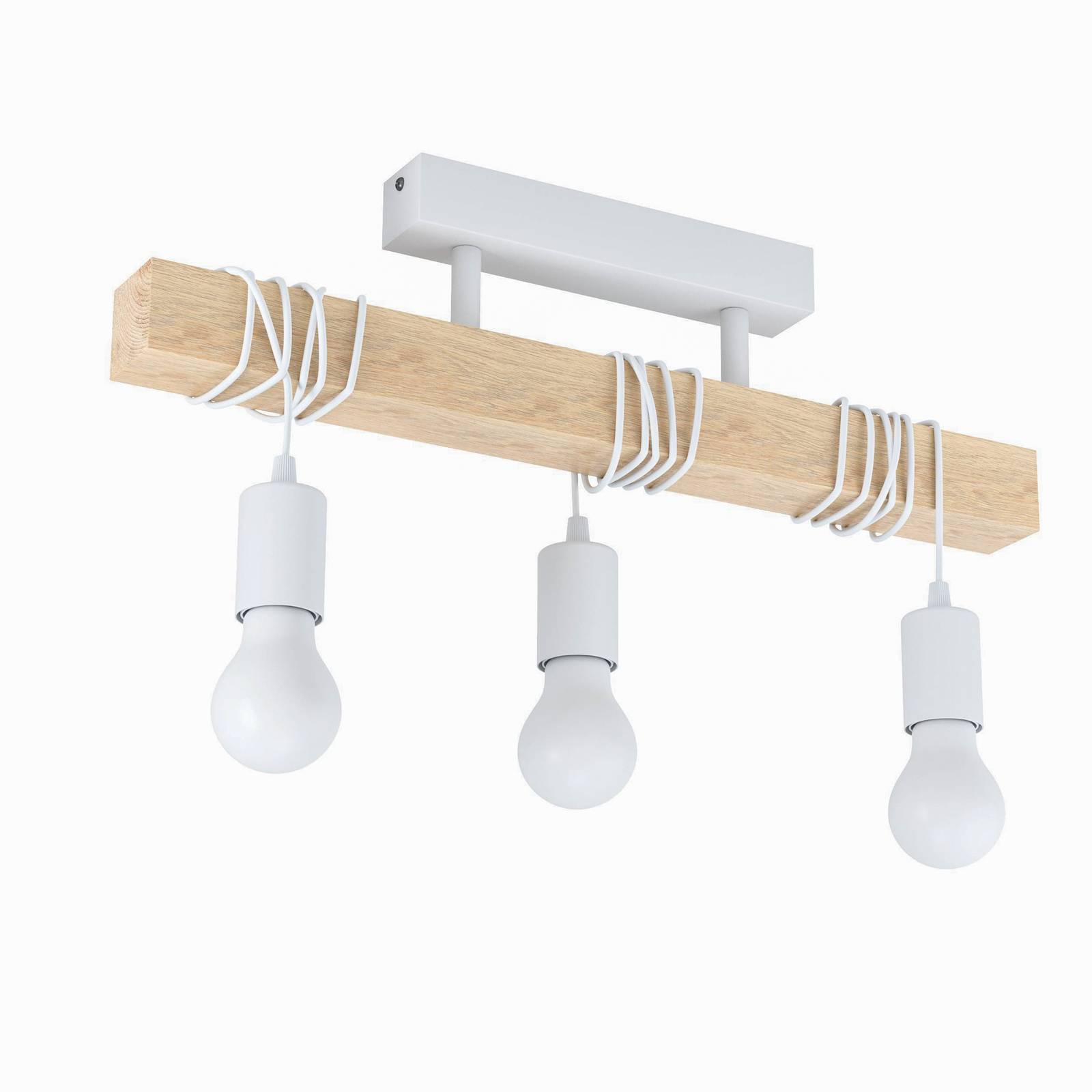 EGLO Stropní světlo Townshend ze dřeva, 3 zdroje bílá, Obývací pokoj / jídelna, ocel, dřevo, E27, 60W, P: 55 cm, L: 10.5 cm, K: 26.5cm