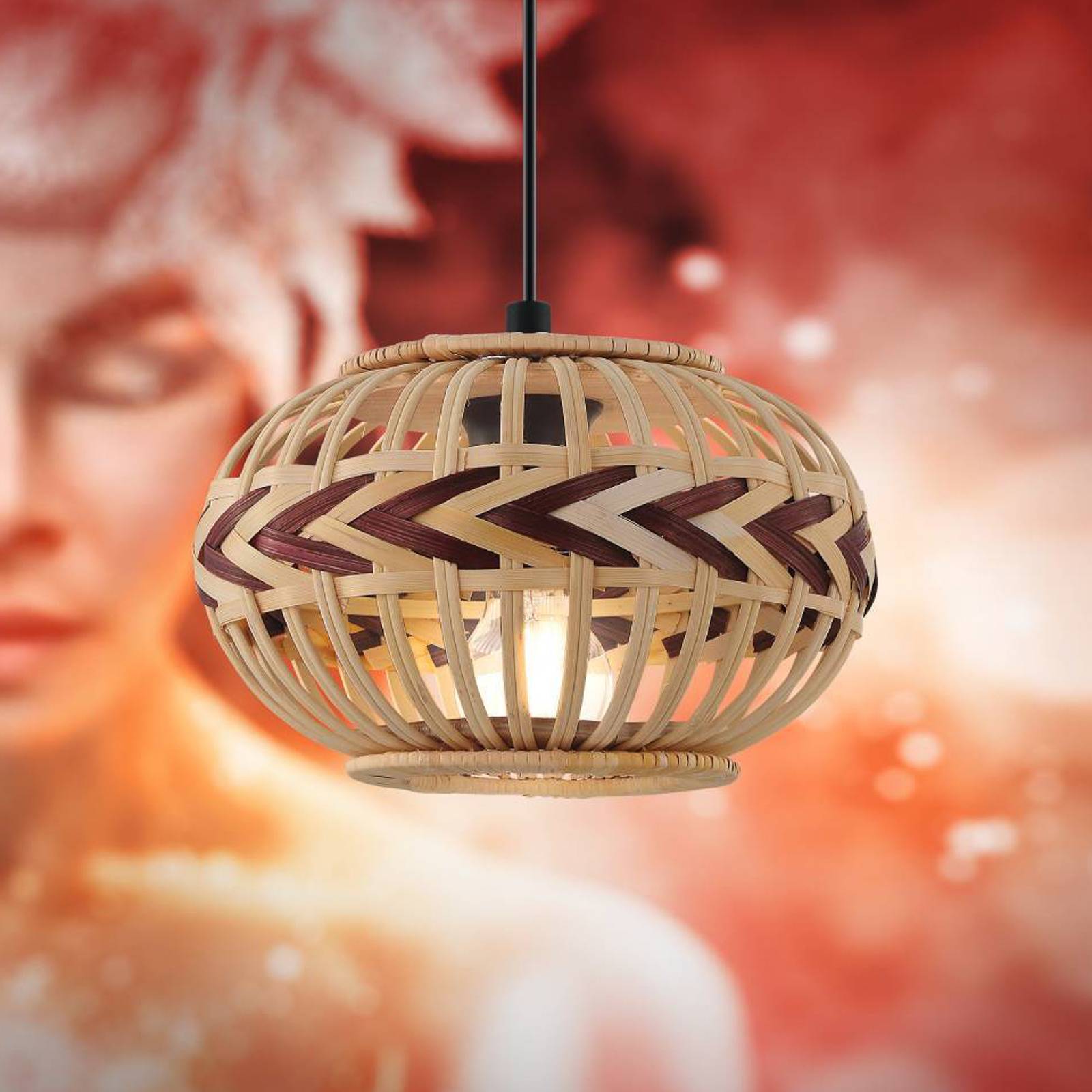EGLO Závěsné světlo Dondarrion, přírodní/vínová Ø 26 cm, Obývací pokoj / jídelna, dřevo, ocel, E27, 40W