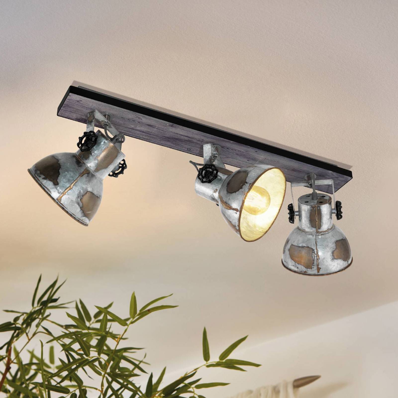 EGLO Stropní světlo Barnstaple industr. vzhled 3-žár., Obývací pokoj / jídelna, kov, dřevo, E27, 40W, P: 75 cm, K: 24cm