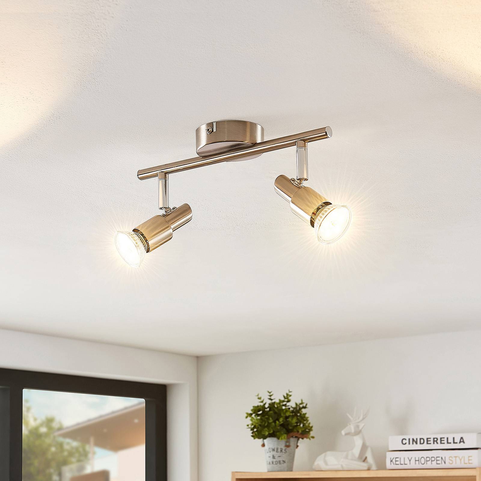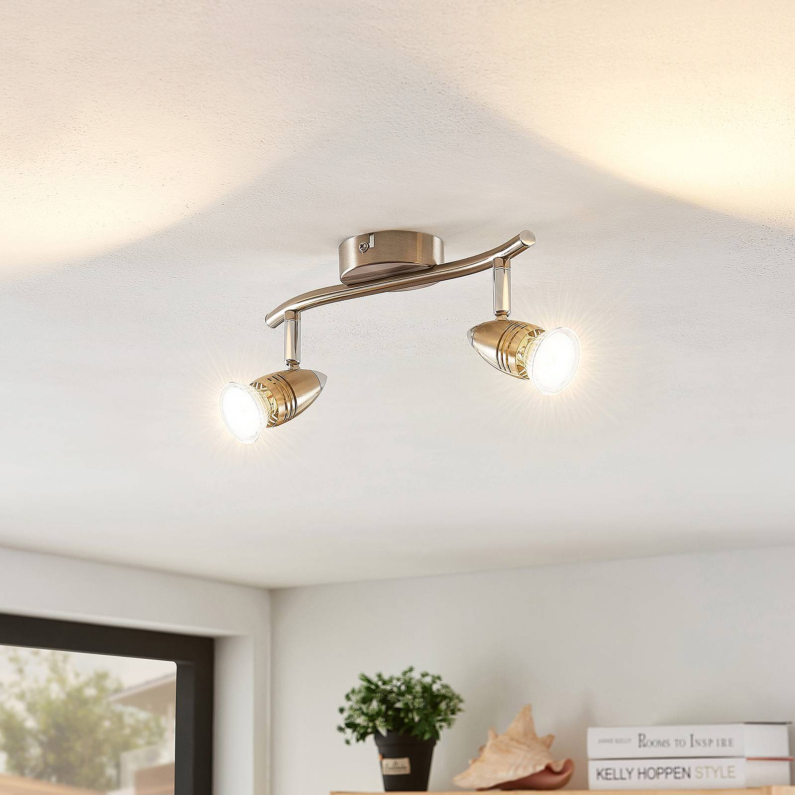 ELC Kalean stropní bodovka, nikl, 2 zdroje, Obývací pokoj / jídelna, kov, ocel, GU10, 10W, P: 27.5 cm, L: 8 cm, K: 15.5cm