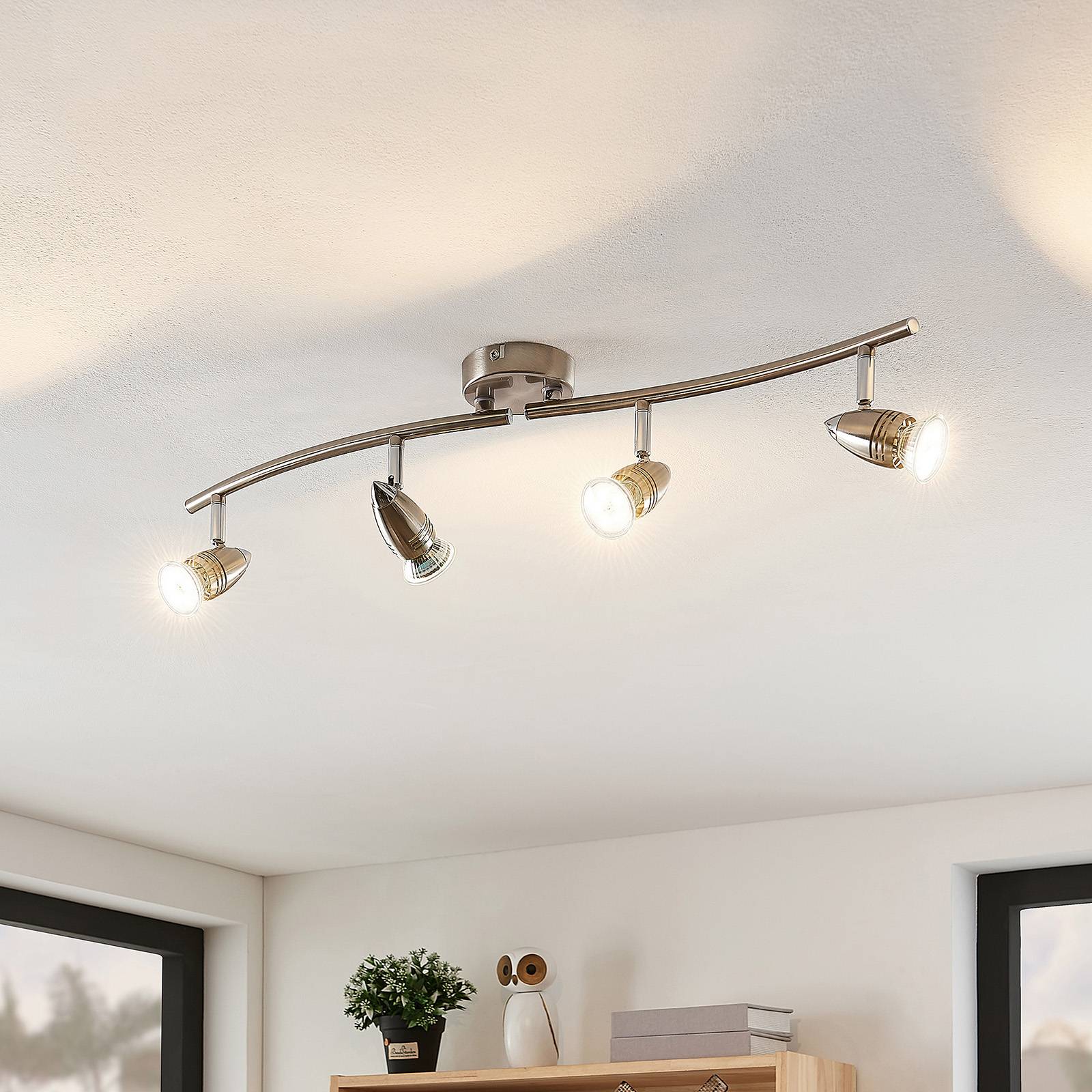 ELC Kalean stropní bodovka, nikl, 4 zdroje, Obývací pokoj / jídelna, kov, ocel, GU10, 10W, P: 70 cm, L: 9 cm, K: 16.6cm