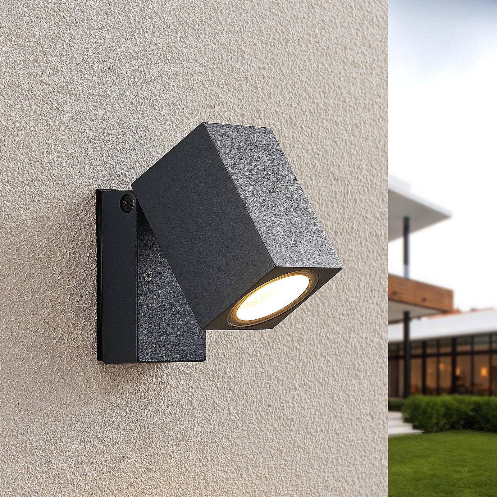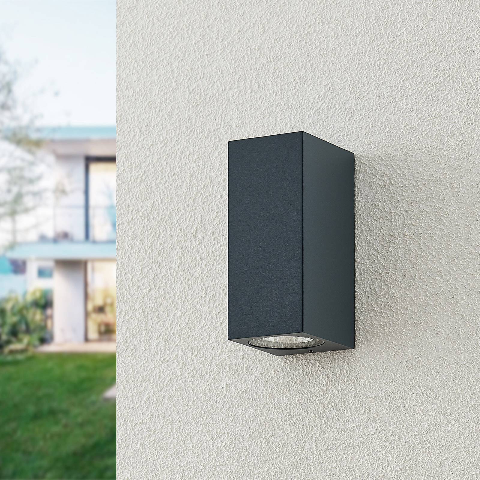 ELC Venkovní nástěnné bodové svítidlo Nogita, hliník, šedá, 10 cm, GU10, Hliníkový tlakový odlitek, GU10, 10W, L: 6.6 cm, K: 10cm