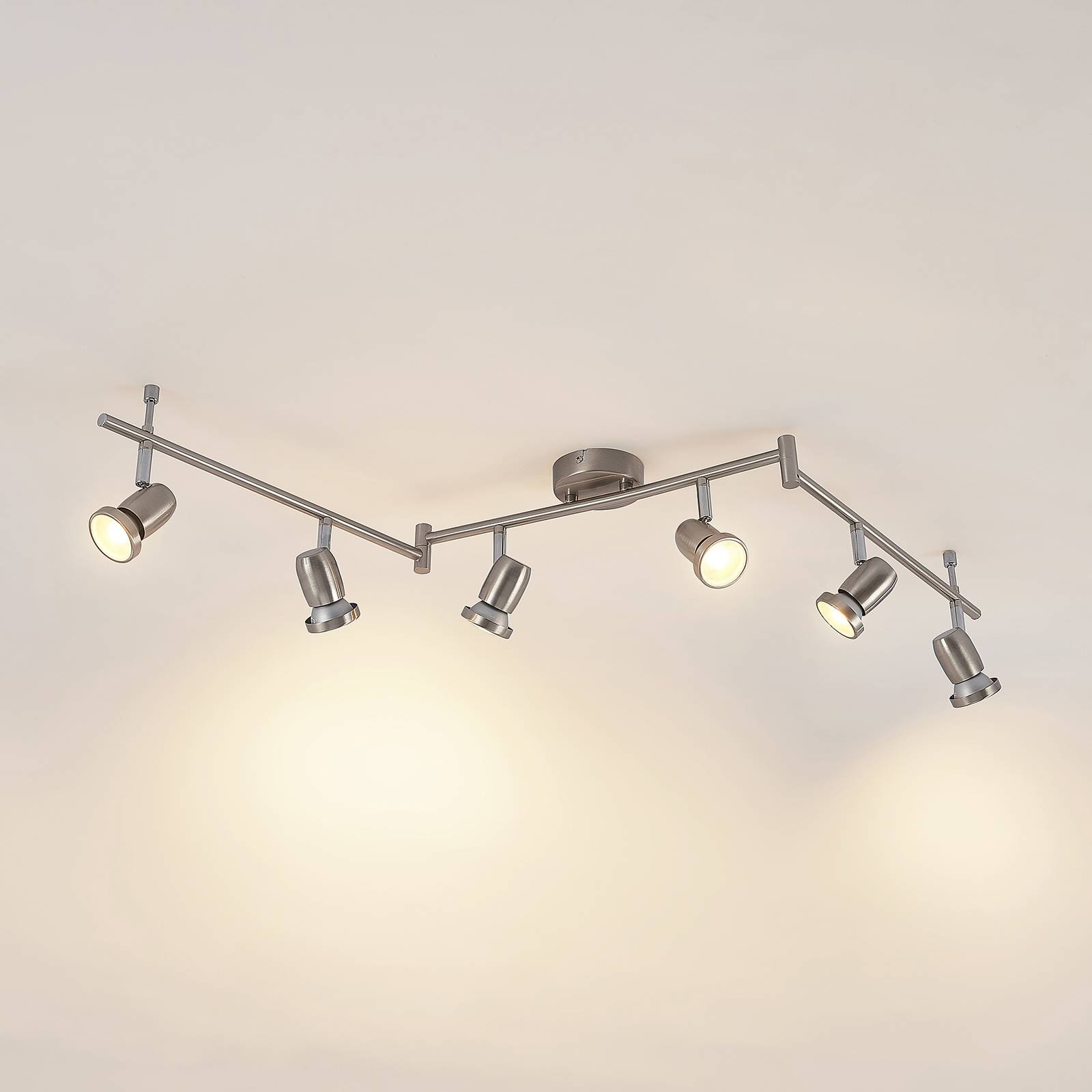 ELC Simano LED stropní reflektor, nikl, 6 zdrojů, Obývací pokoj / jídelna, železo, GU10, 5W, P: 120.5 cm, L: 9 cm, K: 15.5cm
