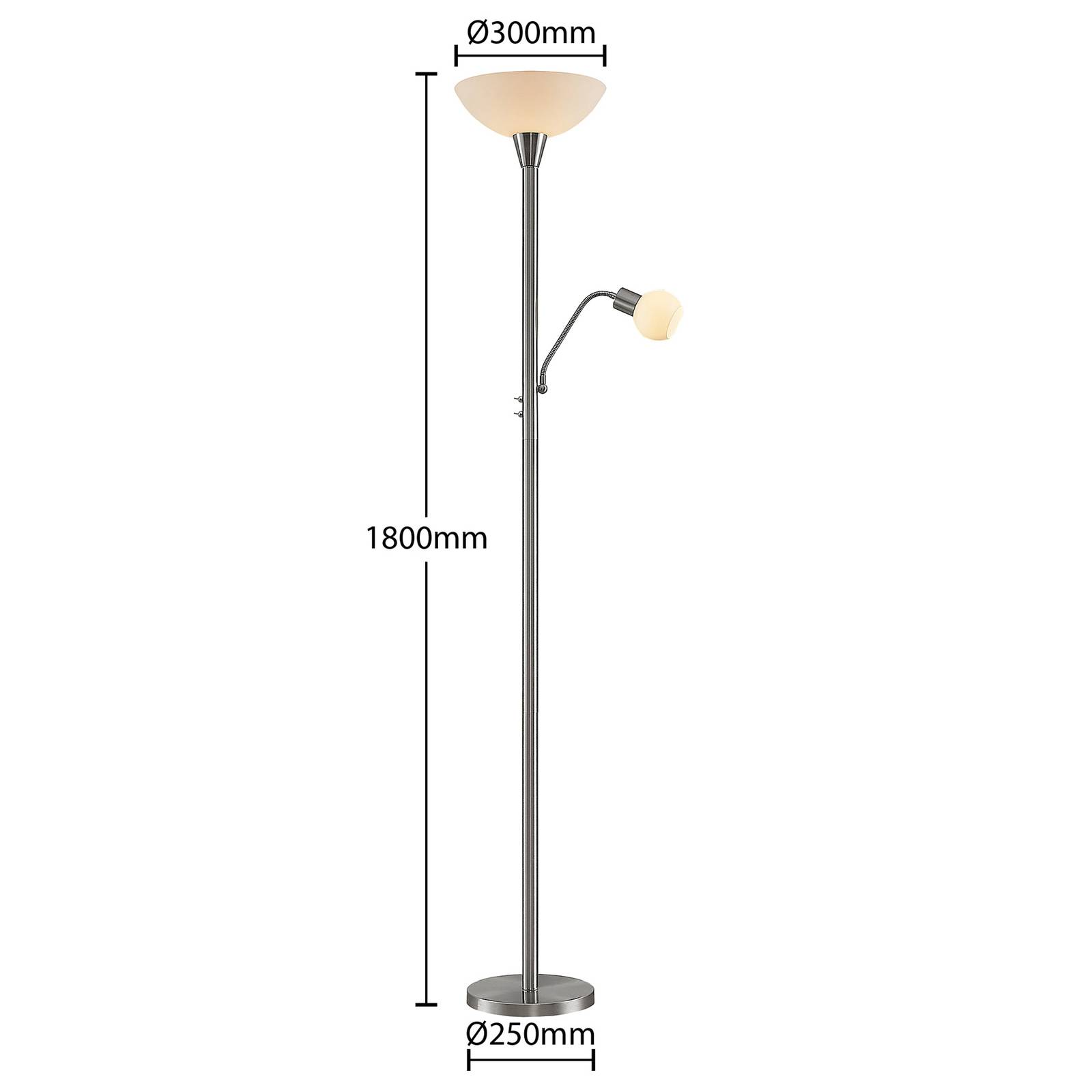 ELC stojací lampa Navisa, čtecí světlo, matný nikl, Obývací pokoj / jídelna, železo, sklo, E27, K: 180cm
