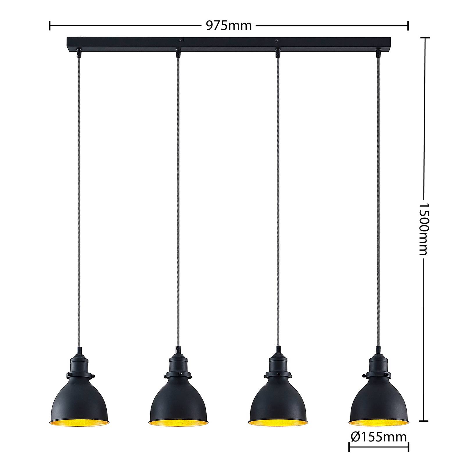 ELC Doskali závěsné, černá-zlatá, 4 zdroje, Kuchyň, železo, E27, 60W, P: 97.5 cm, L: 15.5 cm, K: 20cm