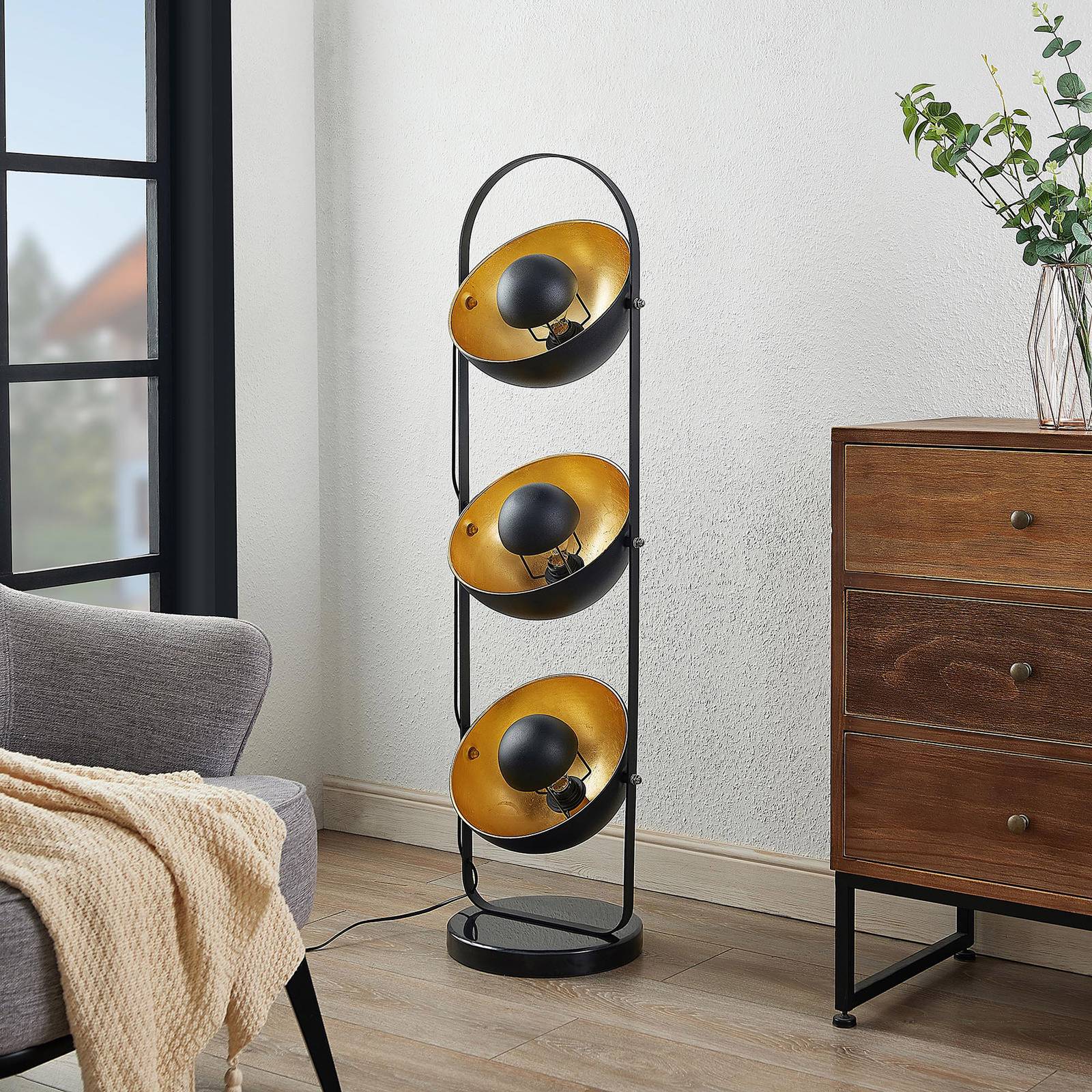 ELC Tarimbo stojací lampa 3 zdroje černá/zlatá, Obývací pokoj / jídelna, železo, E27, 60W, P: 31.8 cm, L: 30 cm, K: 120cm