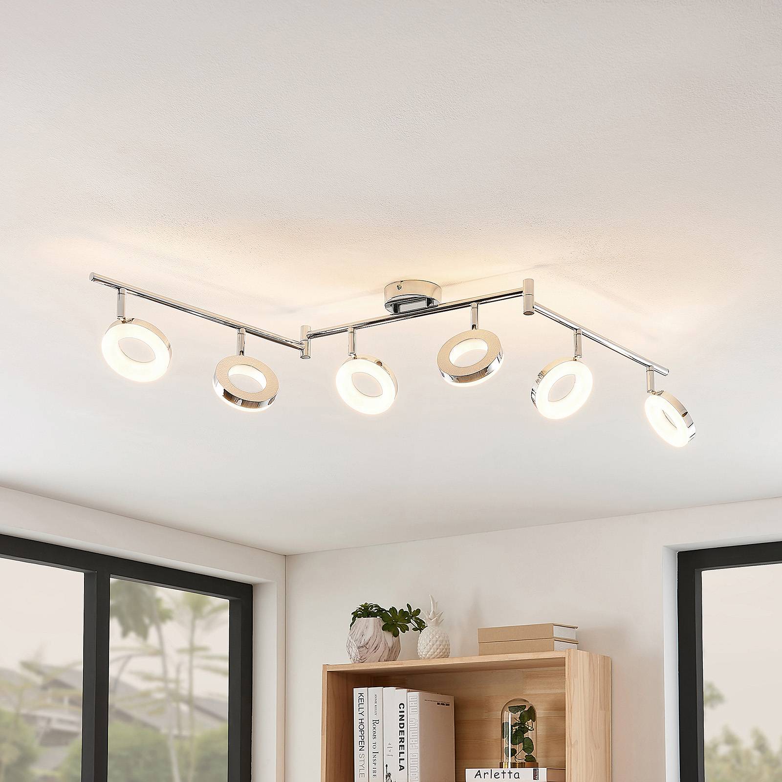 ELC Tioklia LED stropní světlo, chrom, šestižár., Obývací pokoj / jídelna, kov, ocel, 4W, P: 120.5 cm, L: 10 cm, K: 21.2cm