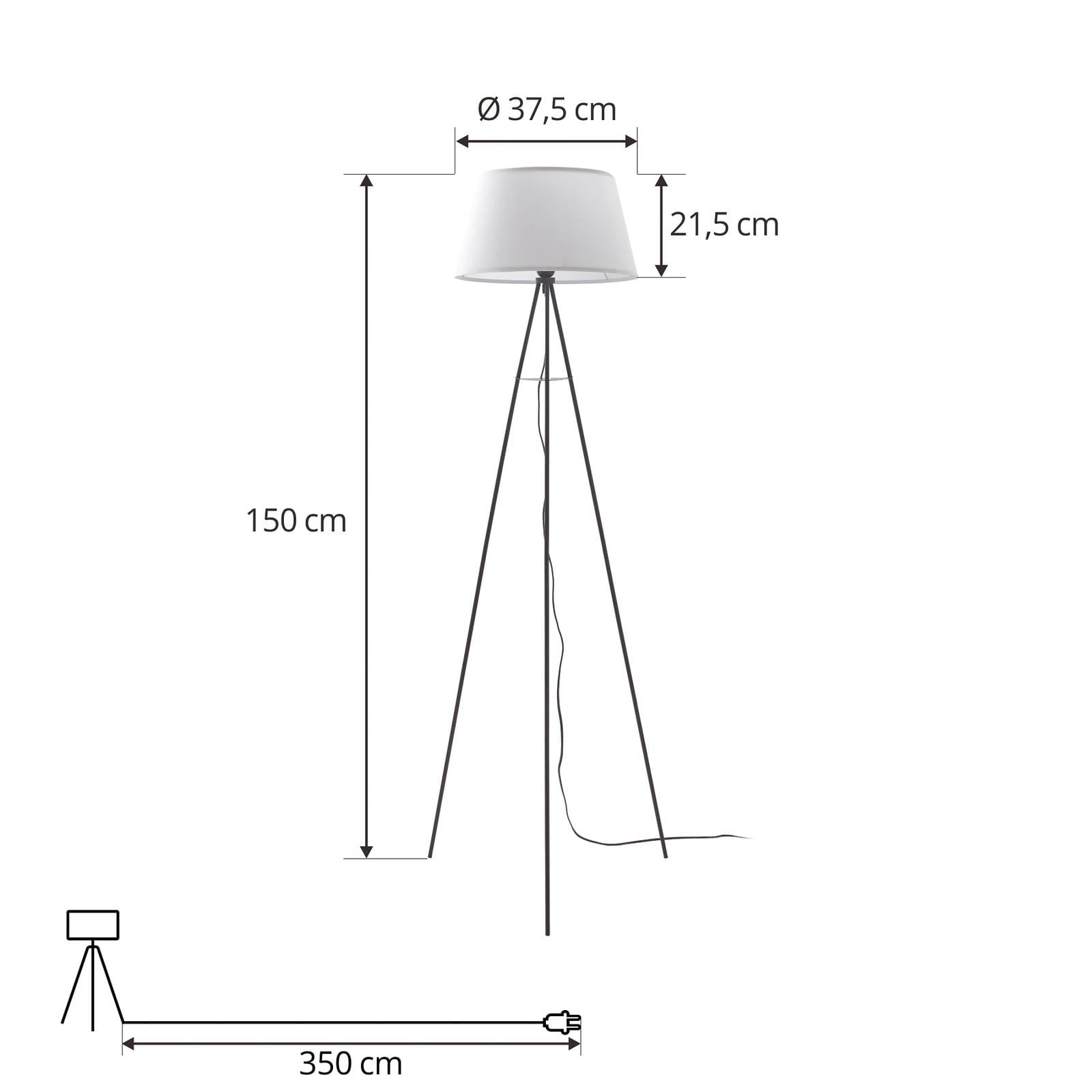 ELC Elsika třínohá stojací lampa, textil, bílá, Obývací pokoj / jídelna, ocel, tkanina, E27, 15W, K: 150cm