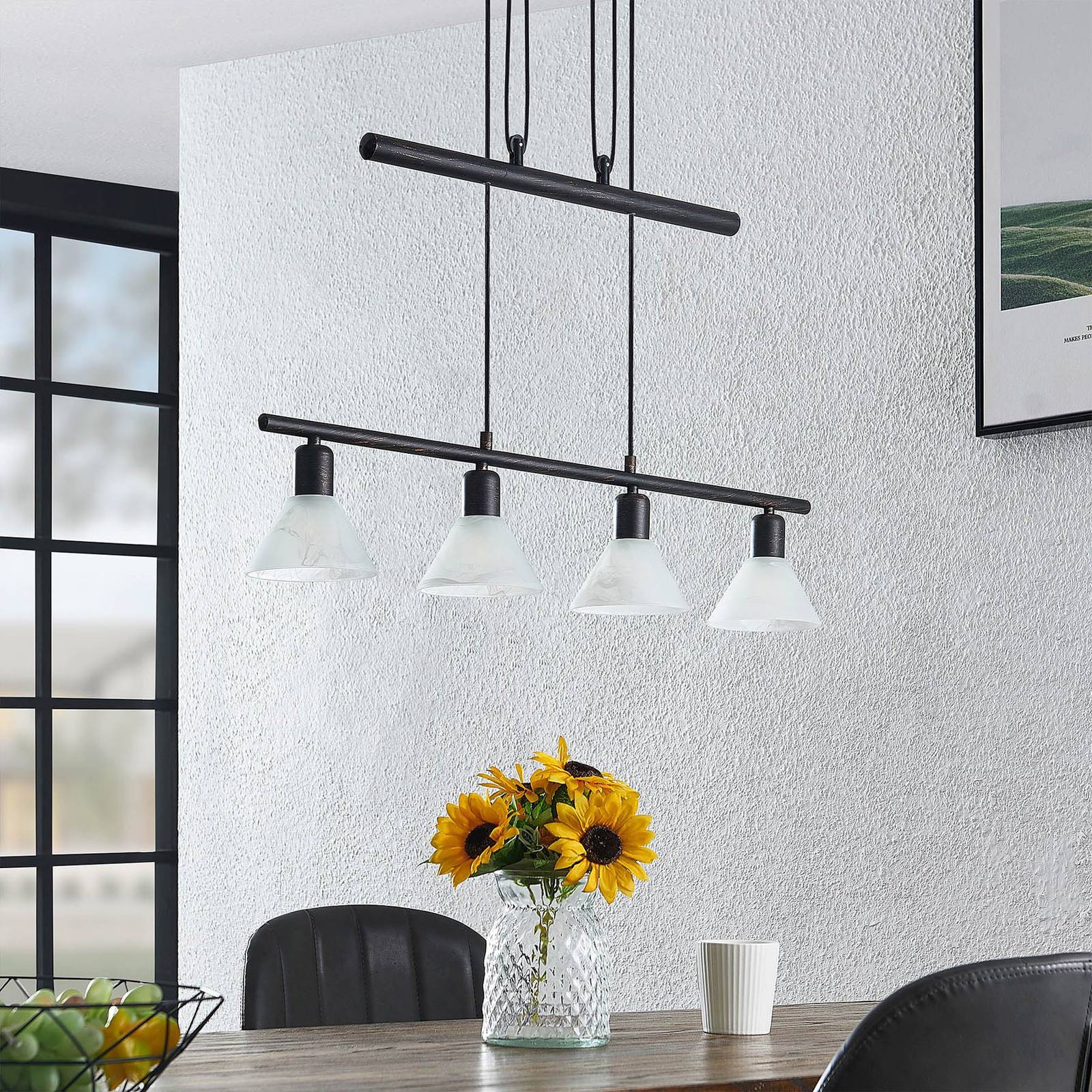 ELC Bealia závěsné, nastavitelné, 4 zdroje černá, Obývací pokoj / jídelna, sklo, železo, E14, 40W, P: 75 cm, L: 12.5 cm, K: 14.5cm