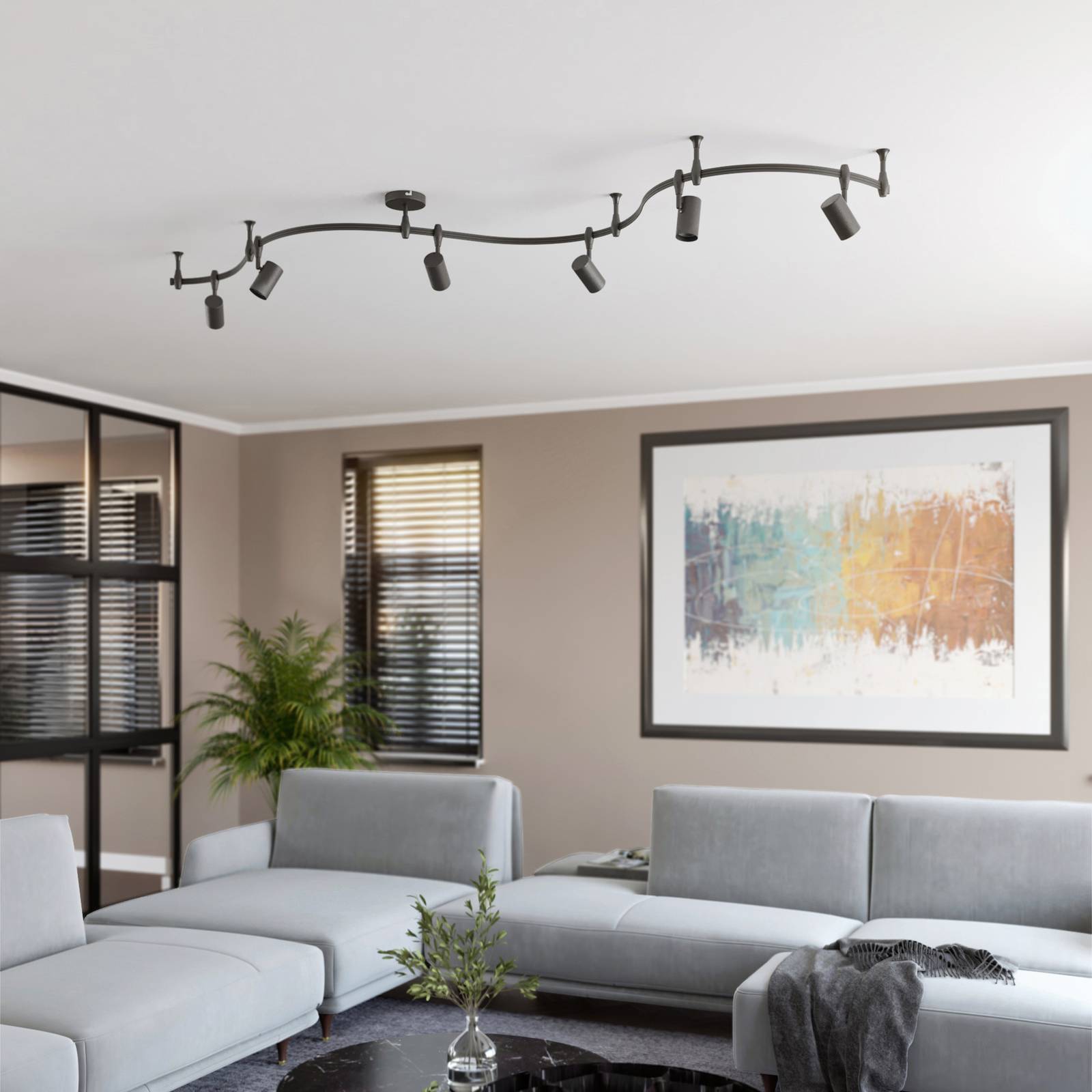 ELC Delila lištový systém, válec, pískově černá, Obývací pokoj / jídelna, ocel, hliník, GU10, 5W, P: 300 cm, L: 12 cm, K: 26cm