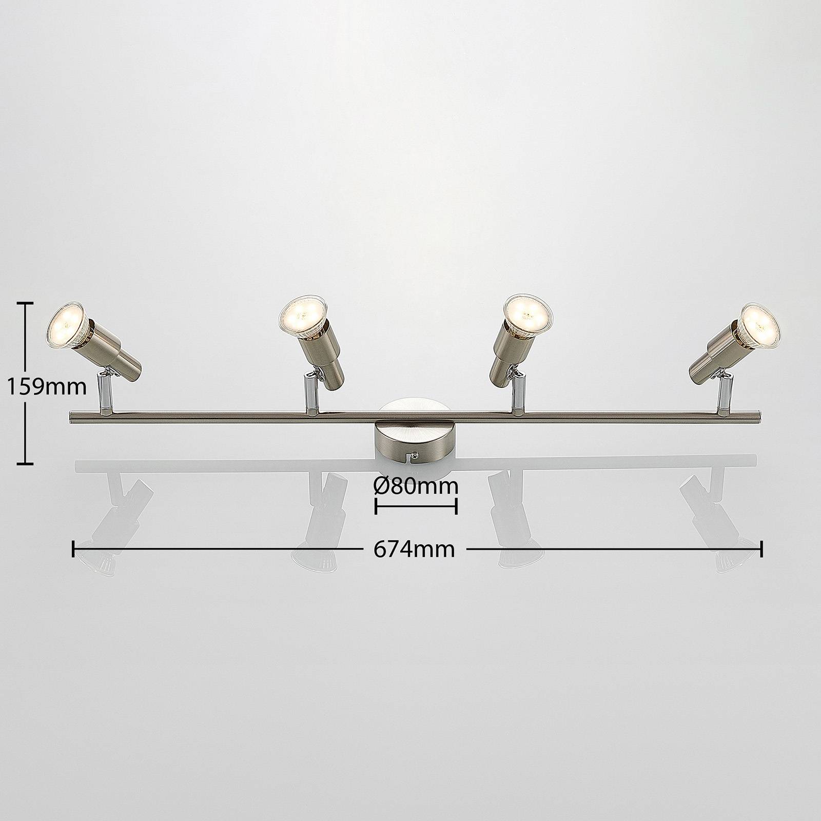 ELC Farida stropní světlo, nikl, 4 zdroje, Obývací pokoj / jídelna, kov, ocel, GU10, 10W, P: 67.5 cm, L: 8 cm, K: 15.9cm