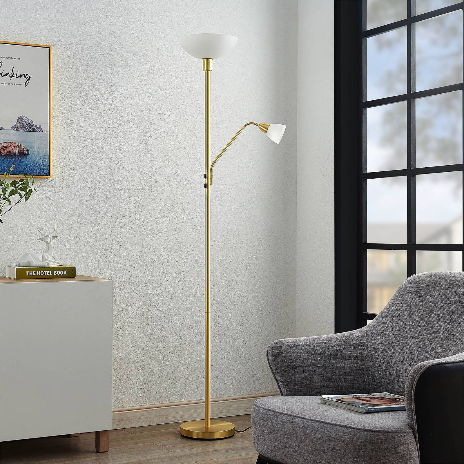 ELC Haviana stojací lampa se čtecím světlem mosaz, Obývací pokoj / jídelna, železo, polykarbonát, E27, 15W, K: 183cm