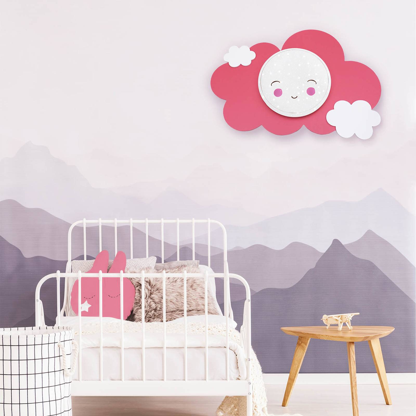 Elobra LED nástěnné světlo oblak Starlight Smile, růžové, Dětský pokoj, Dřevo, plast, 14W, Energetická třída: F, L: 75 cm, K: 50cm