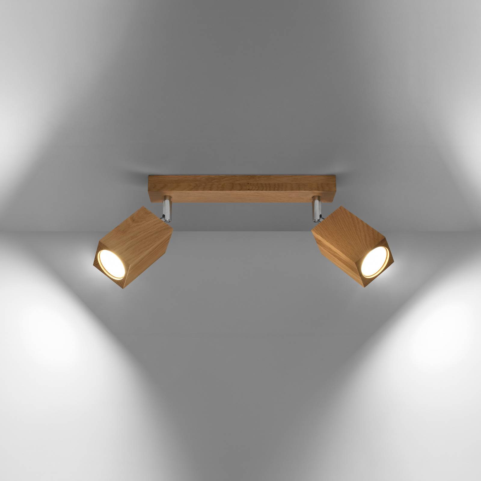 Envostar Peach Puff stropní bodovka dřevo kvádr 2x, Obývací pokoj / jídelna, dřevo, GU10, 10W, P: 30 cm