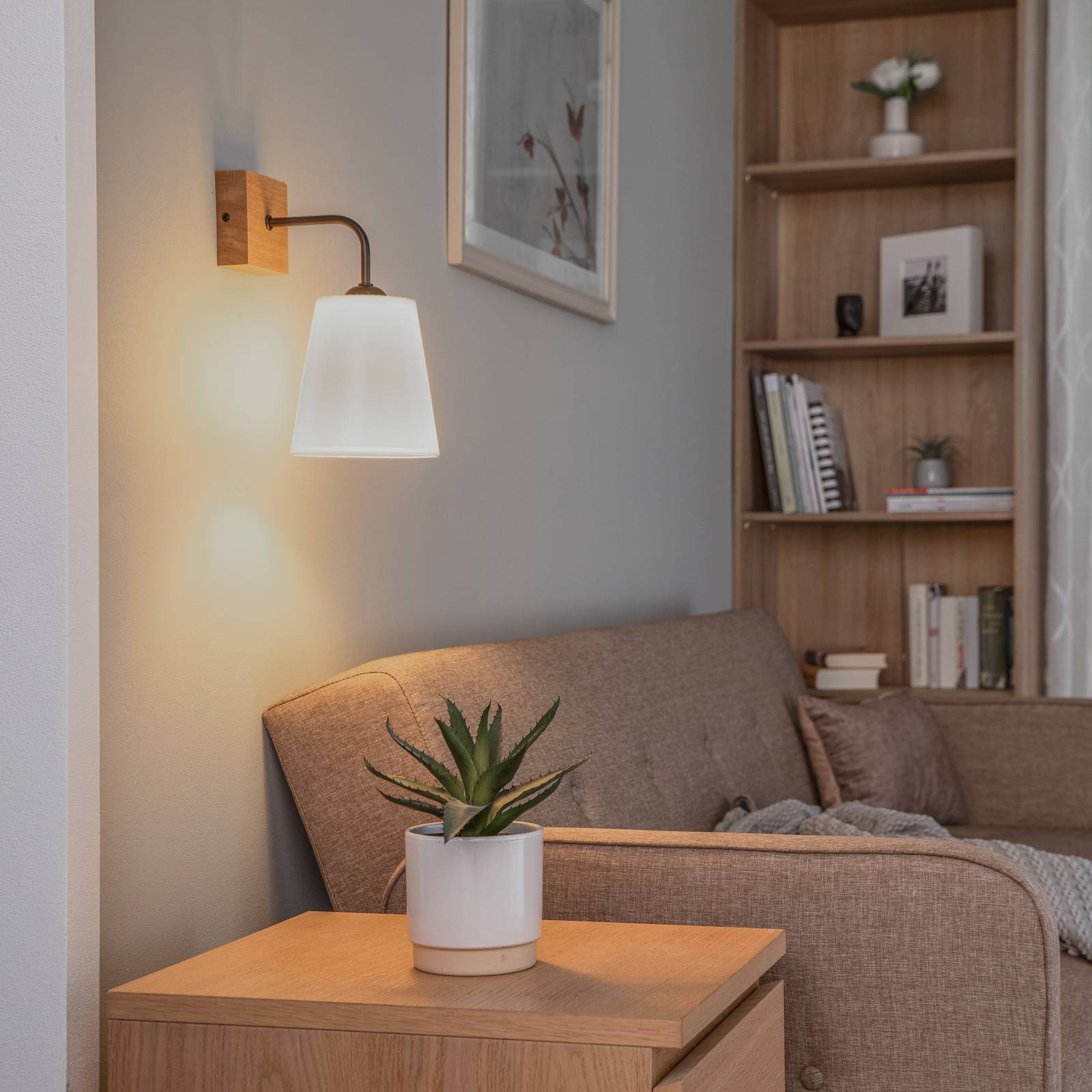 Envostar Kerio nástěnné světlo, 27, 5 cm, borovice, Obývací pokoj / jídelna, dřevo, sklo, E27, 15W, L: 27.5 cm, K: 14cm