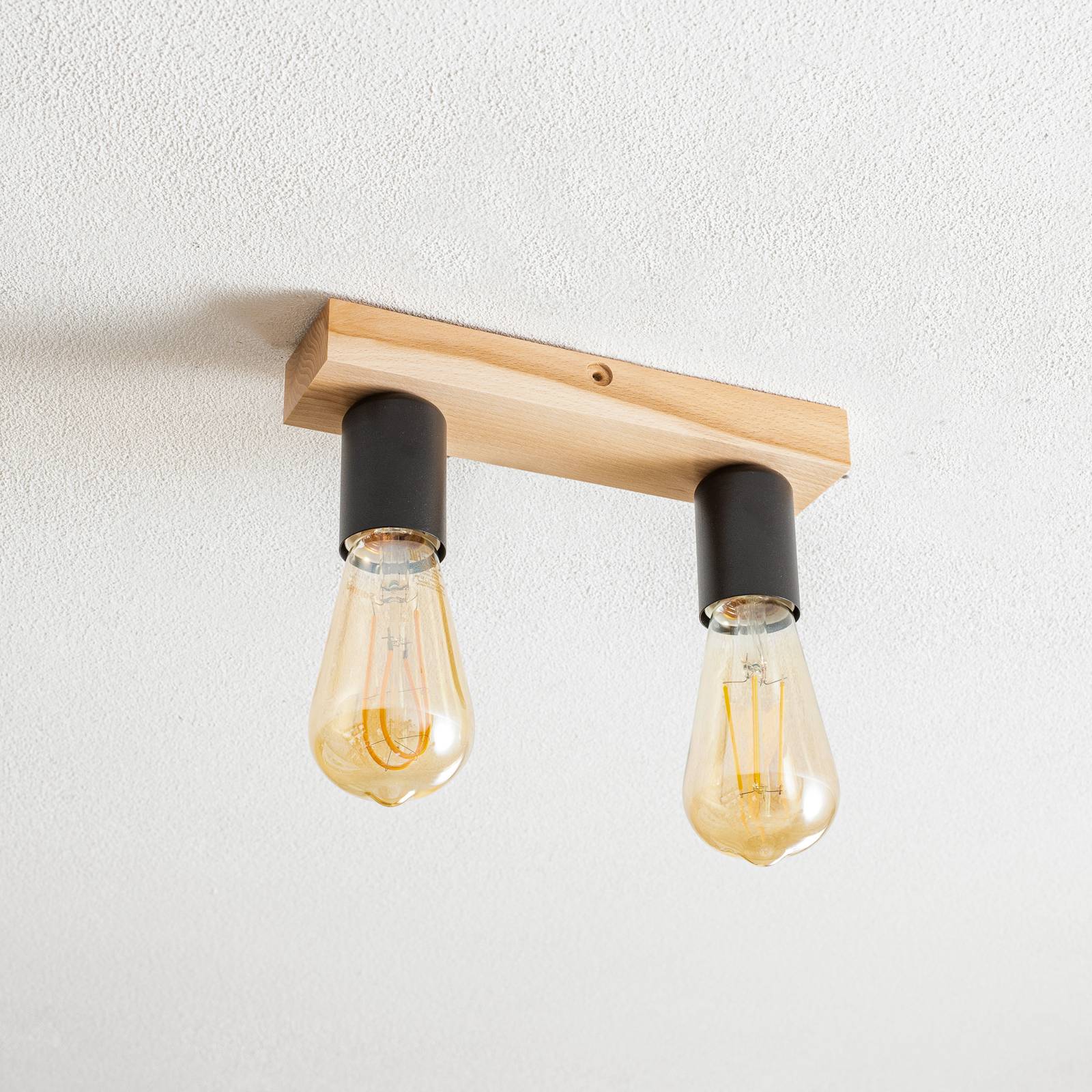 Envostar Stropní svítidlo Esan z bukového dřeva, 2 světla, Obývací pokoj / jídelna, Bukové dřevo, ocel, E27, 60W, P: 24 cm, L: 6 cm, K: 9.5cm