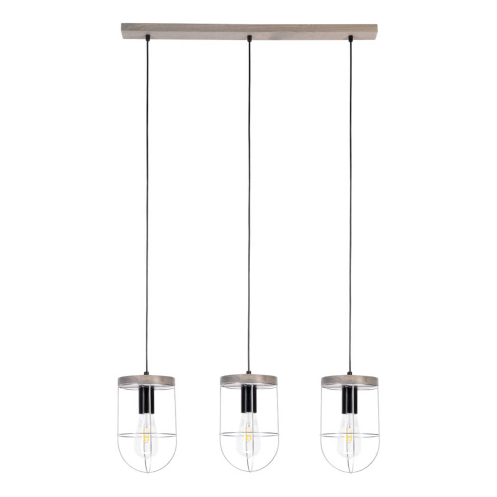 Envostar Závěsné svítidlo Neptuna, lineární třísvítidlo, Obývací pokoj / jídelna, Borovicové dřevo, kov, textil, E27, 15W, P: 76 cm, K: 22cm