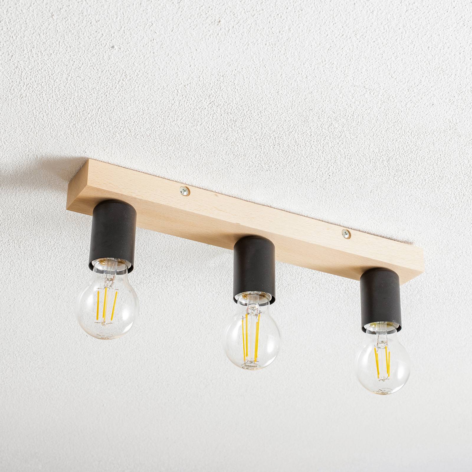 Envostar Esan stropní svítidlo buk 3 světla, Obývací pokoj / jídelna, Bukové dřevo, ocel, E27, 60W, P: 40 cm, L: 6 cm, K: 9.5cm