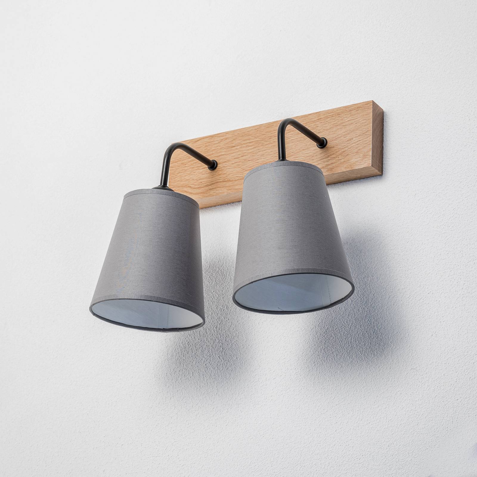 Envostar Risco nástěnné svítidlo 2 světla s látkovým stínidlem šedá, Obývací pokoj / jídelna, Textil, dubové dřevo, ocel, E27, 60W, L: 33 cm, K: 30cm